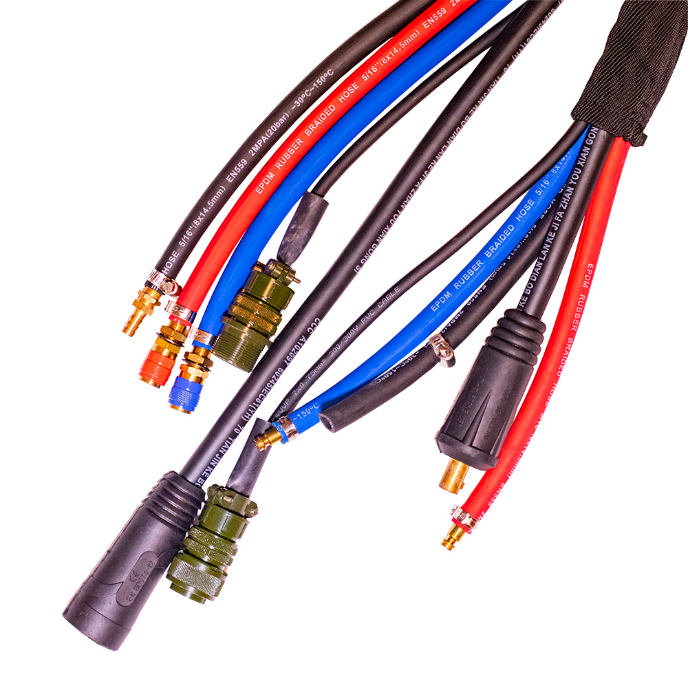 Пакет-коннектор длиной 10 метров с сечением 70 мм2 и 10-контактным разъемом с водяным охлаждением обеспечивает передачу тока до 650 А в сварочных комплексах и промышленных генераторах, сохраняя стабильность при температурах до 130°C благодаря термостойким жилам из бескислородной меди и двойной силиконовой изоляции с армированным шлангом охлаждения. Усиленная конструкция выдерживает 18 000 циклов подключений, защищая от перегрева, вибраций и химических воздействий в условиях экстремальных нагрузок, а встроенная система охлаждения снижает риск перегрузок на 40% по сравнению с воздушными аналогами.