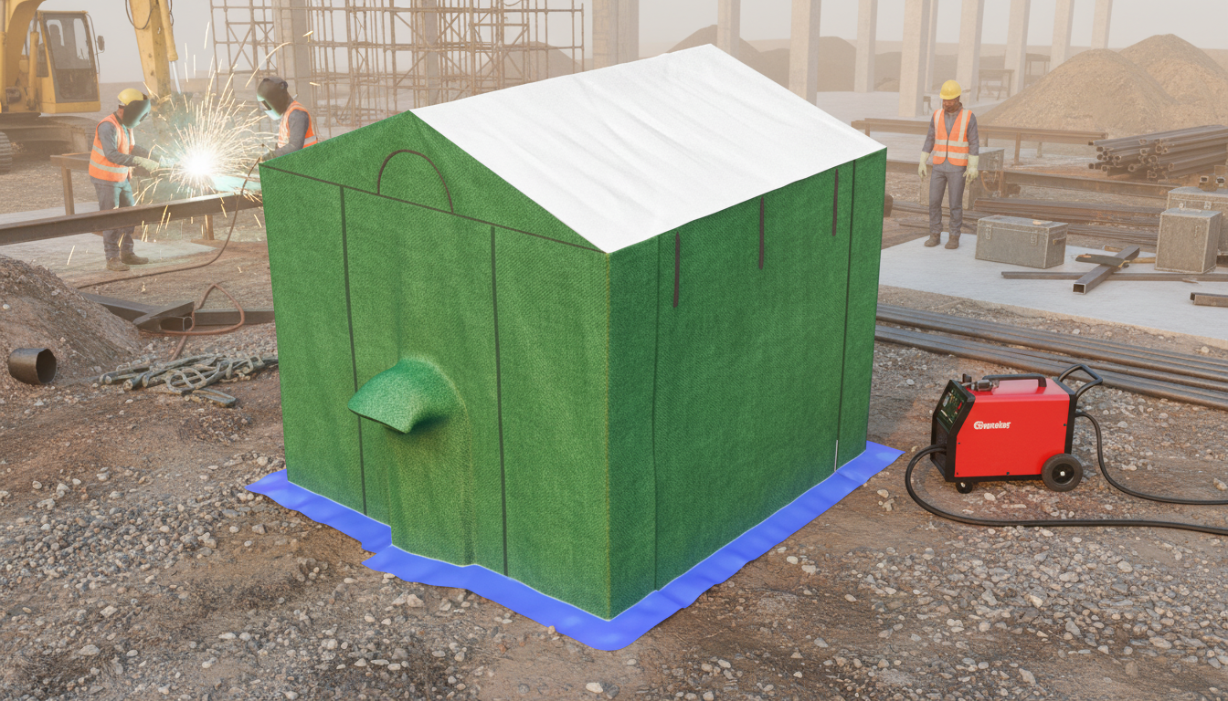 Палатка сварщика “МногоТентов” Нефтяник применяется для сварочных и других видах работ на трубах небольших диаметров. Отлично подходит для ремонта и диагностики различных трубопроводов. Также может применяться для хранения инструмента и оборудования. Каркас палатки выполнен из металлического профиля. Порошковая покраска каркаса обеспечивает образование ударопрочного антикоррозийного покрытия.