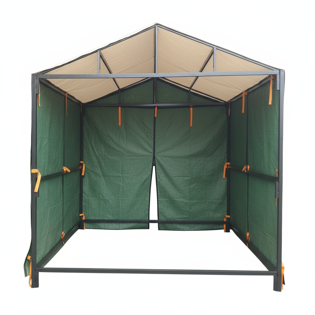 - Универсальное применение – возможность обогрева маломощной тепловой пушкой, что делает укрытие комфортным для работы в холодное время года.