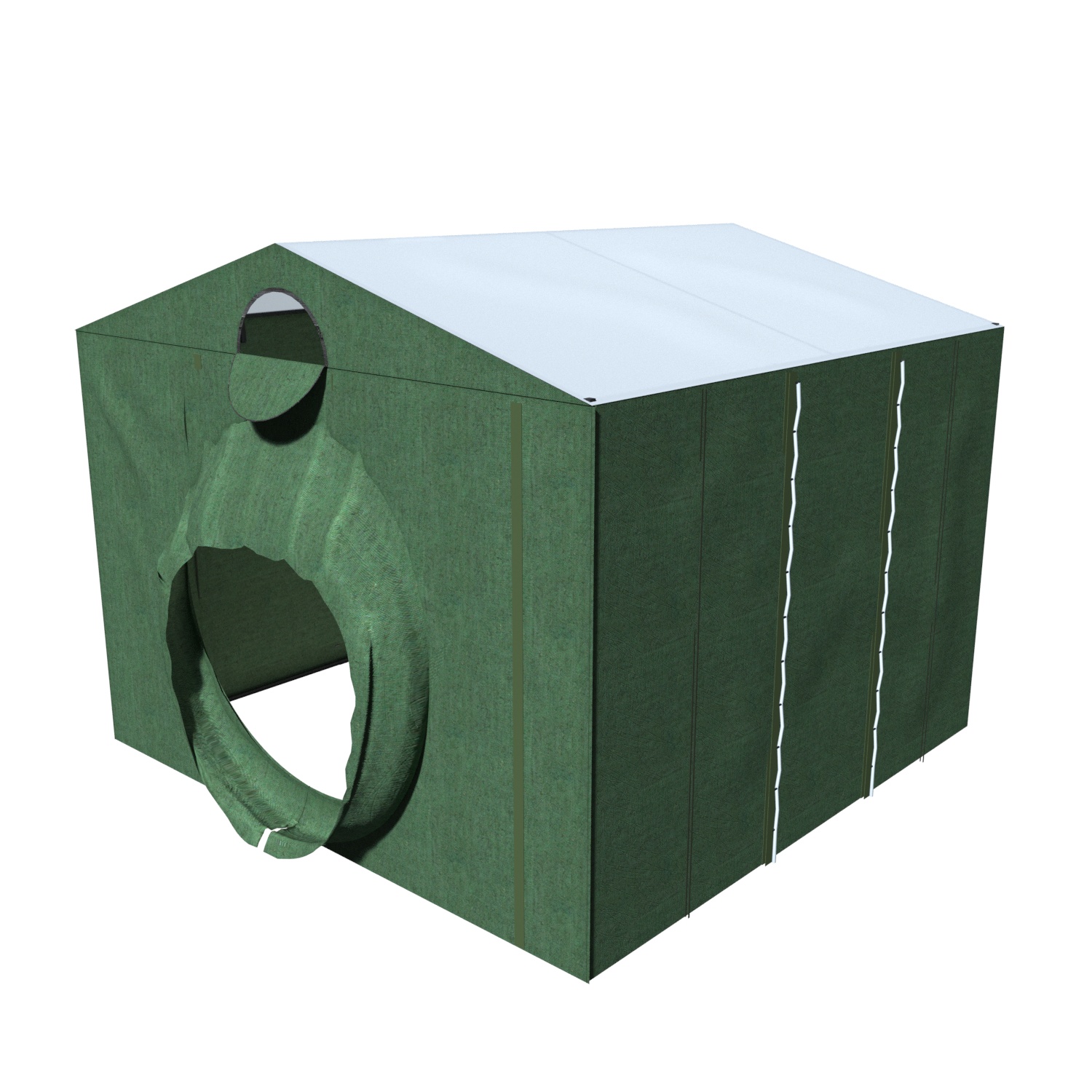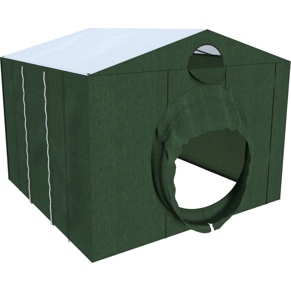 Палатка сварщика "МногоТентов" (ПС-3) 3x3 м предназначена для проведения сварочно - монтажных работ на трубопроводах различного назначения: газовые коммуникации, нефтепроводы, сети водоснабжения.Особенностью ПС-3 является патрубок для трубопровода (диаметр трубы 620 - 1520 мм). Стенки оснащены открывающимися воротами, которые фиксируются для прохождения трубы. Вход застегивается на молнию. Каркас палатки выполнен из металлического профиля, для сборки которого не требуется инструмент, время сборки занимает около 15 минут. Порошковая покраска каркаса обеспечивает образование ударопрочного антикоррозийного покрытия. Стены палатки выполнены из брезента, достоинством которого являются: воздухопроницаемость, низкая гигроскопичность, износостойкость, устойчивость к растяжениям, трению, химическим реагентам. Крыша палатки выполнена из тентовой ткани ПВХ преимуществами которой являются: высокая прочность, долговечность, водонепроницаемость и устойчивость к перепаду температур от -30°C до +70°C.Использовать сварочную палатку (домик) можно и в зимнее время года. Ткань не затвердевает при отрицательной температуре, для обогрева можно использовать тепловую пушку. Рассчитана для работы до 5 человек.
