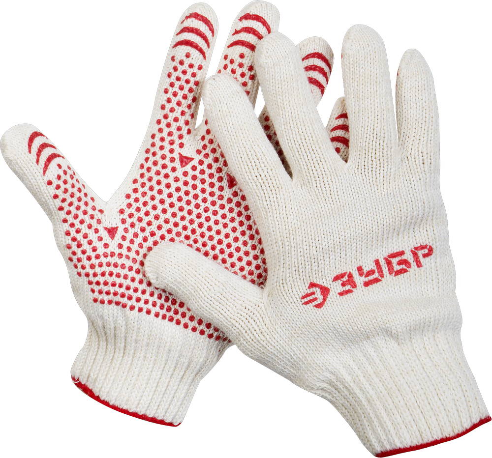 Материал изготовления — натуральный хлопок, который обеспечивает оптимальный воздухообмен и создает комфортные условия для работы. Внутренняя сторона ладоней оснащена специальными элементами из ПВХ или латекса, которые значительно улучшают сцепление с различными поверхностями и предотвращают скольжение предметов.