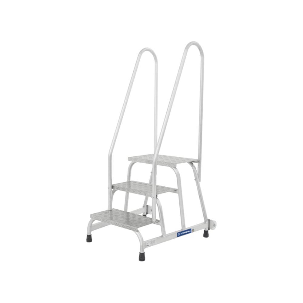 Передвижная монтажная подставка MEGAL (тип 1) 3 ступени с двумя поручнями 050703 применяется при проведении строительных и монтажных работ на небольшой высоте. Верхняя площадка размером 31х51 см позволяет комфортно разместиться. Ступени глубиной 25 см, выполненные из рифленого листового алюминия, обеспечивают безопасный и удобный подъем/спуск. Ножки подставки укомплектованы резиновыми противоскользящими башмаками, что гарантирует устойчивость на поверхности. Для удобства перемещения по рабочей территории модель оснащена комплектом колес.
