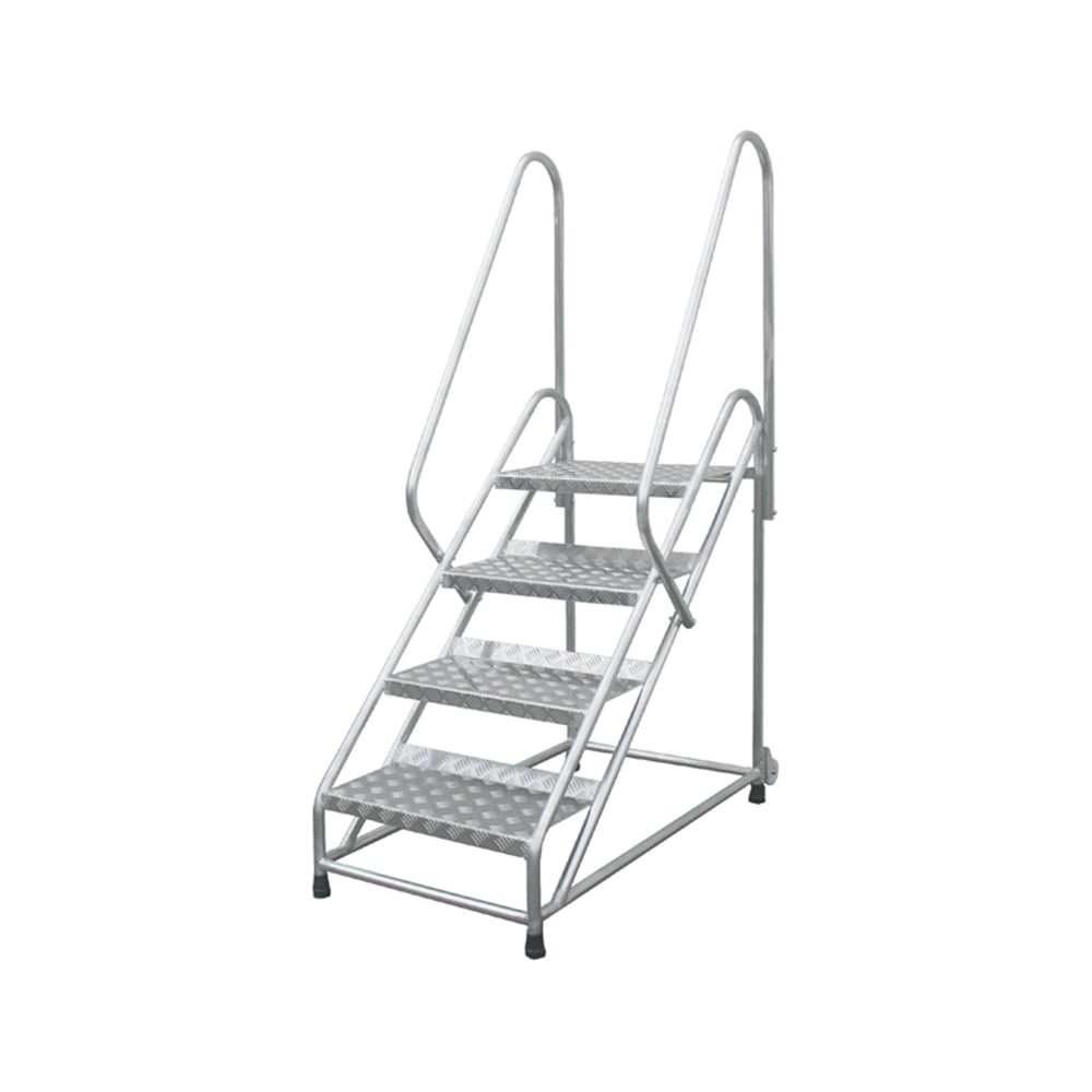 Передвижная монтажная подставка MEGAL (тип 2) 4 ступени с двумя поручнями 051204 применяется при проведении строительных и монтажных работ на небольшой высоте. Верхняя площадка размером 60х40 см позволяет комфортно разместиться. Ступени глубиной 29 см, выполненные из рифленого листового алюминия, имеют загнутую внутреннюю кромку, которая предотвращает проскальзывание ноги внутрь. А дополнительное боковое ограждение предотвращает соскальзывание ноги вбок. Ножки подставки укомплектованы резиновыми противоскользящими башмаками, что гарантирует устойчивость на поверхности. Для удобства перемещения по рабочей территории модель оснащена комплектом колес.