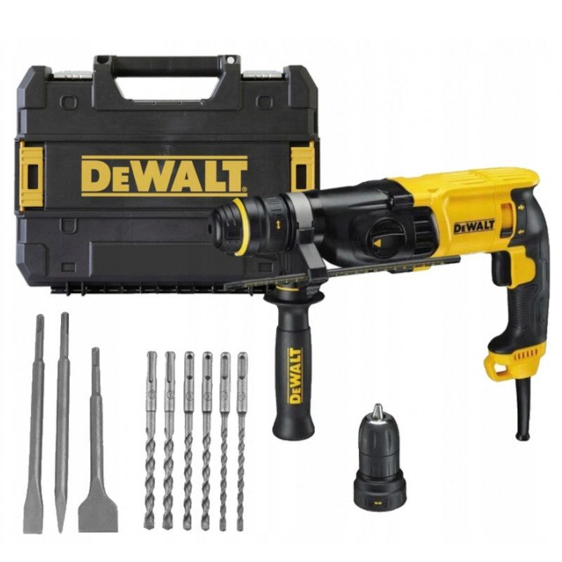 Перфоратор DeWalt D25144KP перфоратор с тремя режимами работы и быстросъемным патроном SDS-plus. Отлично подходит для инсталляционных работ - монтаж сантехники, электрики. Блокировка вращения для легких долбежных работ . Три режима работы: сверление, сверление с ударом и долбление. Возможность установки долота в 40 положениях без дополнительных принадлежностей. Долгий срок службы благодаря усовершенствованной системе уплотнений защиты двигателя от пыли. Специальная конструкция воздуховодов для отвода исходящего потока охлаждающего воздуха от глаз пользователя. Поставляется в кейсе.