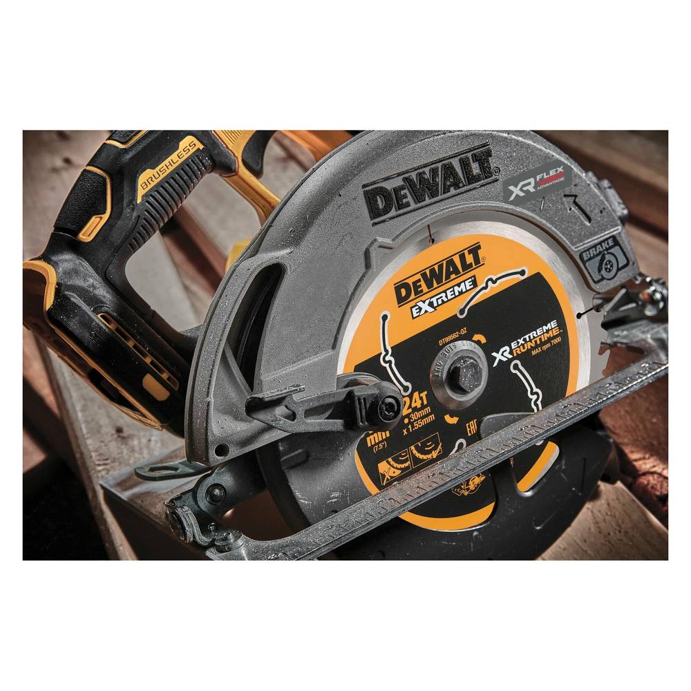 Пила дисковая аккумуляторная DeWalt DCS573NT (б/акк,б/зу) – инструмент профессионального уровня с бесщёточным двигателем и литий-ионным аккумулятором 18 В. Максимальное число оборотов холостого хода 5500 в минуту. Диаметр диска 190 мм. Максимальная глубина пропила под углом 90 градусов составляет 67 мм. Есть возможность подключения к пылесосу. Можно работать с направляющей шиной. Инструмент отличается отличной эргономикой и удобным управлением. Для продолжительной работы есть функция фиксации пусковой клавиши. В комплект оборудования входит удобный и вместительный кейс для транспортировки и хранения инструмента. Поставляется без аккумулятора и зарядного устройства. Вес пилы 4,6 кг.