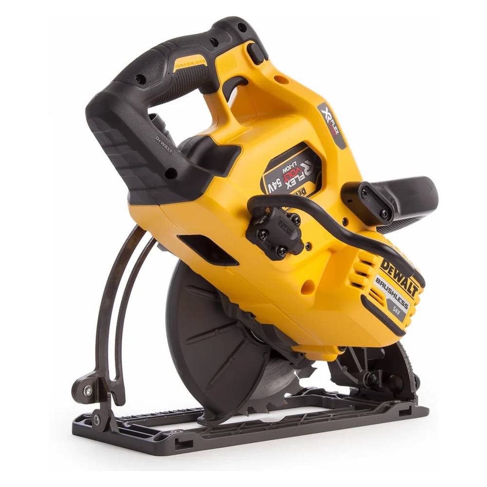 Дисковая пила DEWALT 54 В XR FLEXVOLT DCS577N-XJ пригодится для работы на стройплощадке. Высокий крутящий момент позволяет работать с твердыми породами дерева, промерзшей древесиной или делать пропилы вдоль волокон.