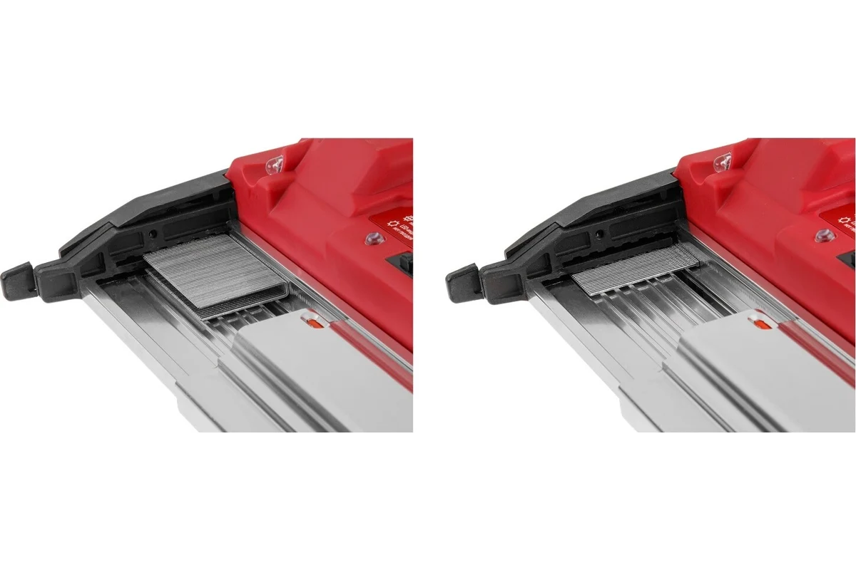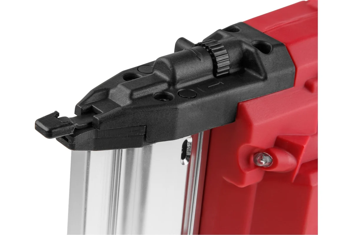 Аккумуляторный гвоздезабивной пистолет может использоваться для каркасной сборки, обшивочных, финишных и кровельных работ. Так, в зависимости от твердости древесины, можно настроить глубину забивания гвоздя/скобы за счет удобной бесключевой регулировки. Кроме того, ударная часть оснащена пластиковой накладкой, что исключает повреждение поверхности деталей при отделочных работах. Так же инструмент характеризуется высокой скоростью забивки до 100 гвоздей/скоб в минуту и вместительным магазином в 100 шт. В инструменте так же есть 2 режима забивки: одиночный и скоростной, что значительно расширяет сферу применения инструмента. В целях безопасности на инструменте предусмотрена защита от холостого срабатывания и специальный предохранитель на кончике ударной части. Удобству эксплуатации так же способствует индикатор, который информирует, что закончились гвозди/скобы, заклинила оснастка или аккумулятор практически разряжен.