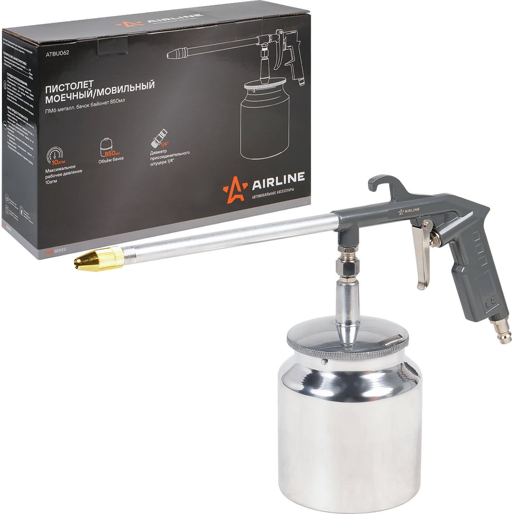 Пистолет изготовлен из металла. Имеет быстросъёмный бачок для распыляемого состава с байонетным присоединением. Прочный металлический корпус устойчив к повреждениям.