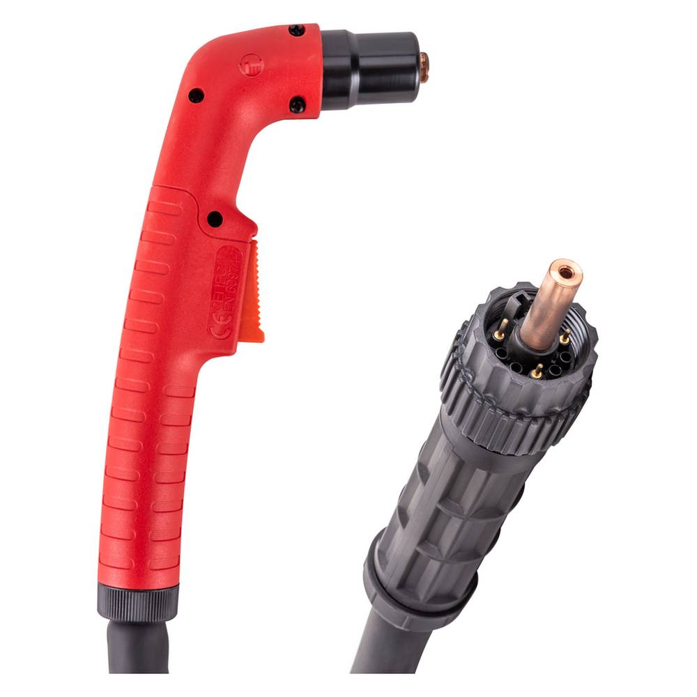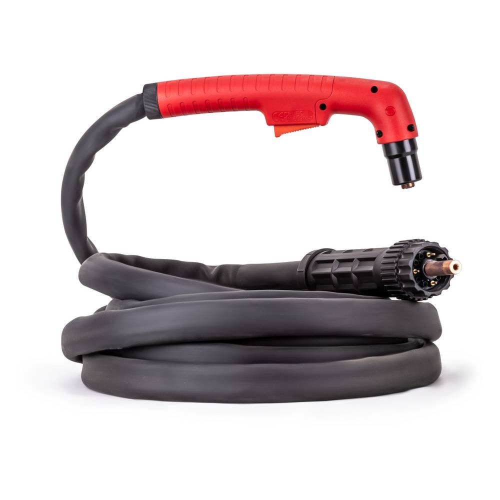 Плазмотрон CB-50 предназначен для аппаратов плазменной резки с силой тока реза не более 50 Ампер. Максимальная толщина реза металла для данного плазмотрона составляет 20 мм. Максимальная толщина чистого реза равна 15 мм. Плазмотрон подключается к аппарату плазменной резки через центральный адаптер. Охлаждение плазмотрона воздушное.