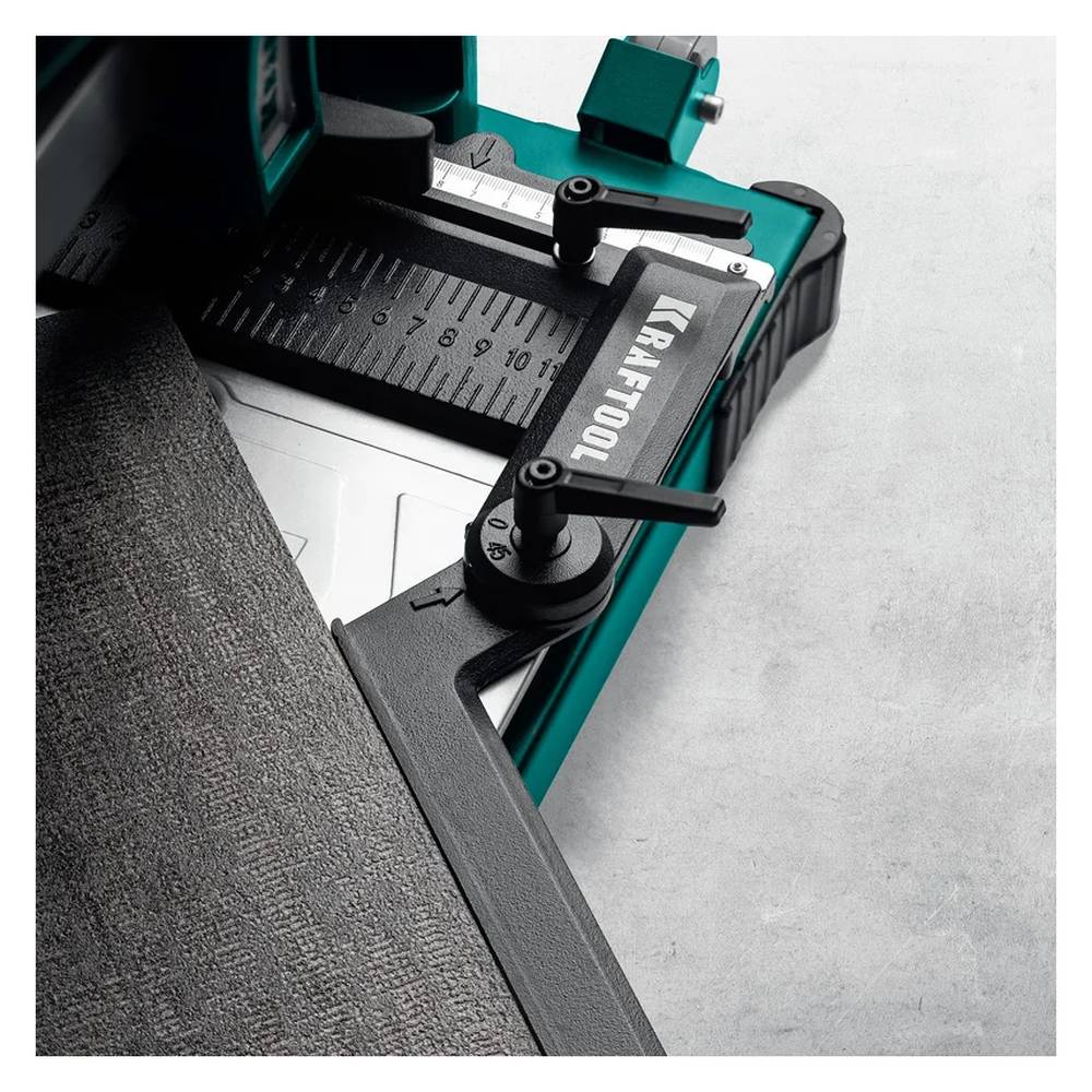 Профессиональный плиткорез ULTRA подходит для резки любой плитки толщиной до 16 мм. Его режущий элемент рассчитан на 10 километров реза без замены. Плавный ход каретке обеспечивают 10 подшипников, спрятанных в корпусе. Цельный стальной рельс прямоугольного сечения позволяет каретке надежно перемещаться, не застревая даже при самых сильных нагрузках. Боковые опоры надежно закрепляются на основании и поддерживают плитку, не позволяя ей соскользнуть. Линейка с угломером позволяет сделать самый точный рез. Плавающее основание является ультимативным решением для защиты плитки от ухода от линии реза во время прохождения режущего элемента по плитке и растрескивания во время разделения. Для удобной транспортировки плиткореза предусмотрены колесики и ручка в противоположных частях основания, а фиксатор на каретке позволяет безопасно транспортировать плиткорез.