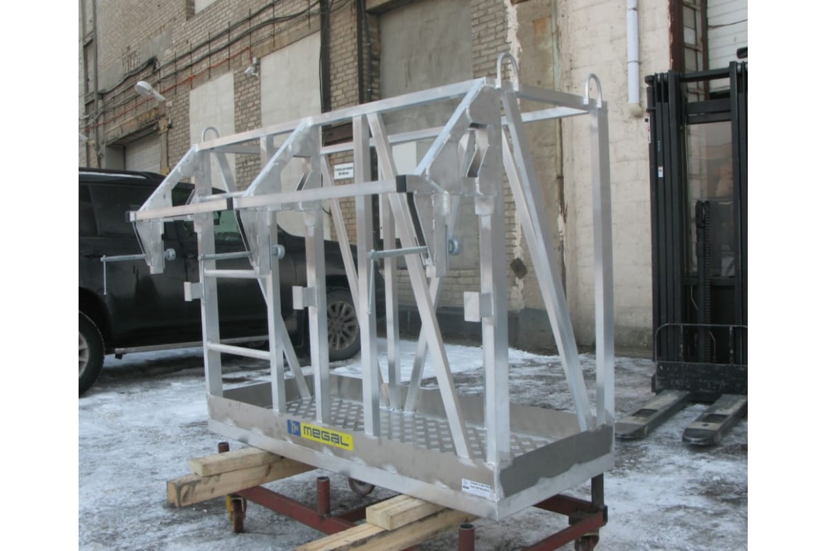 Навешиваемая площадка на кран-балку 30М MEGAL ПНА-2 служит для организации рабочего места на высоте в строительно-монтажных, ремонтных и других работах. Устанавливается на двутавровую балку, имеет тройной прижимной механизм. Рассчитана на двоих человек. Верх площадки оборудован обухами для строповки и подъема конструкции при помощи крана.