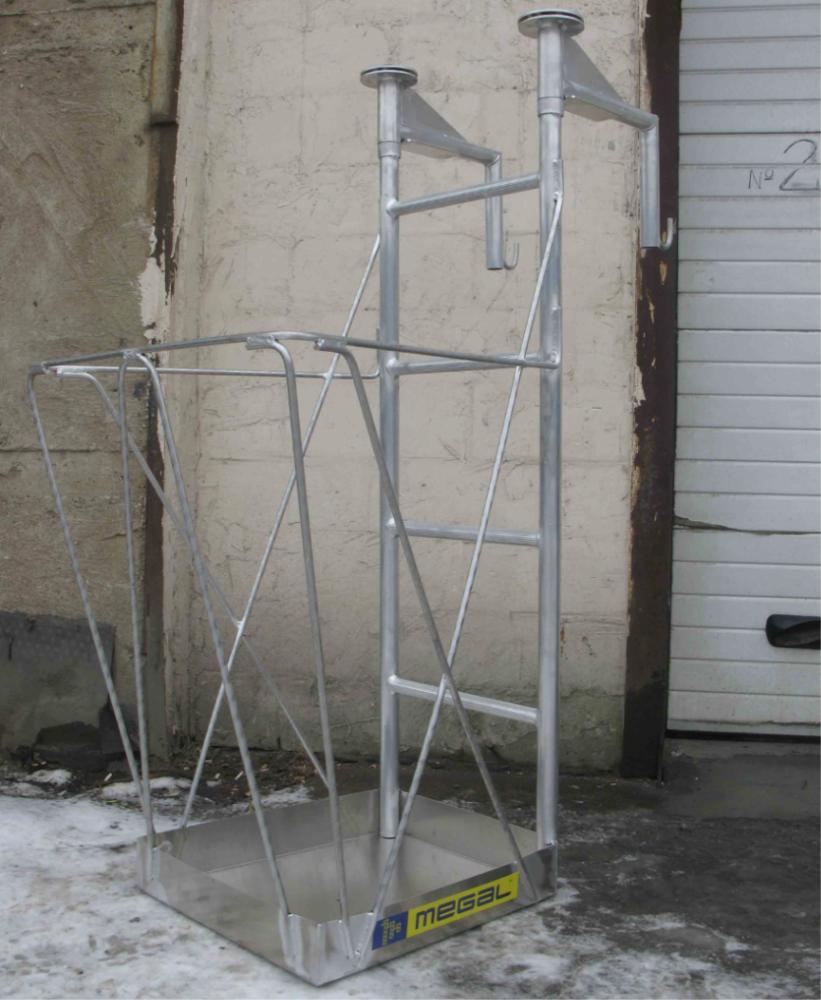 Площадка, навешиваемая на строительные конструкции MEGAL ПКА 1200-0,6*0,55 используется для организации рабочего места на высоте при монтаже строительных конструкций различных зданий и сооружений. Благодаря конструктиву может использоваться в труднодоступных местах. Имеет легкий вес за счет использования алюминиевых сплавов. Рабочая площадка позволяет с удобством расположиться рабочему с инструментом. Максимальная грузоподъемность обеспечивается за счет использования труб и профилей со стенкой не менее 2,5мм. Наличие поворотных консолей, фиксируемых под различными углами при помощи болтов и гаек, даёт возможность навешивать площадку на балки шириной 140, 240 и 300 мм. Кронштейны вращаются вокруг вертикальной оси (складываются), что позволяет подвешивать площадку в угол, на «ломаные» поверхности. Рабочая площадка размером 600х550 мм изготовлена из рифленого листового алюминия. Может применяться как в помещениях, так и на открытых площадках.