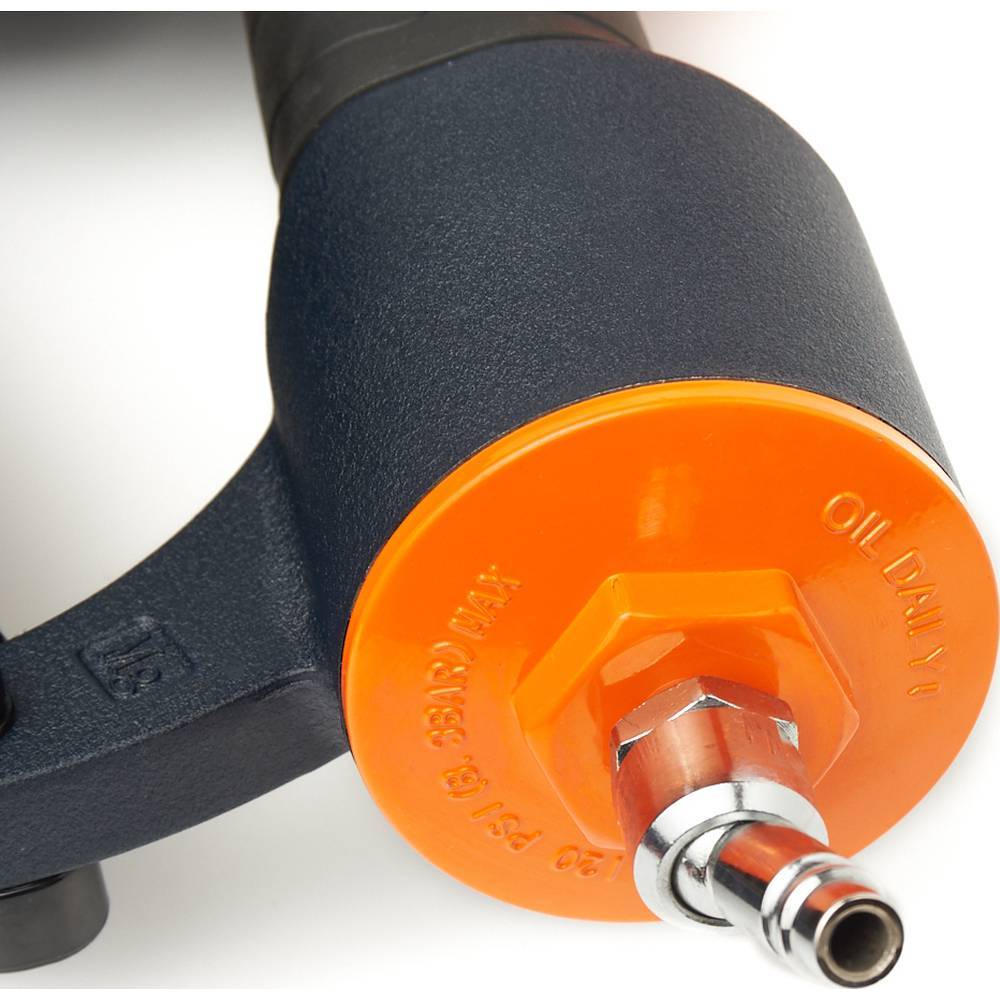 Удобство эксплуатации обеспечивается регулируемым дефлектором выхлопа с возможностью поворота на 360 градусов, что позволяет направлять поток воздуха в нужном направлении. Система быстрого подключения к пневмолинии с поворотным быстросъемным соединением значительно упрощает подготовку к работе.