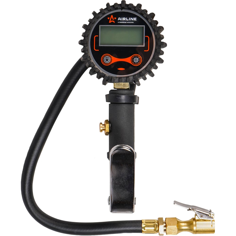 Пистолет для накачки шин с цифровым манометром Airline PRO 14BAR, с клапаном сброса ATBU008 изготовлен из алюминиевого сплава. Электронный манометр защищён резиновым чехлом. Гибкий шланг имеет быстросъёмный наконечник. Конструкцией предусмотрена кнопка для сброса лишнего давления. Диапазон измеряемого давления: 0-14 bar/0-200 psi/0-14 kg/0-1400 kpa.