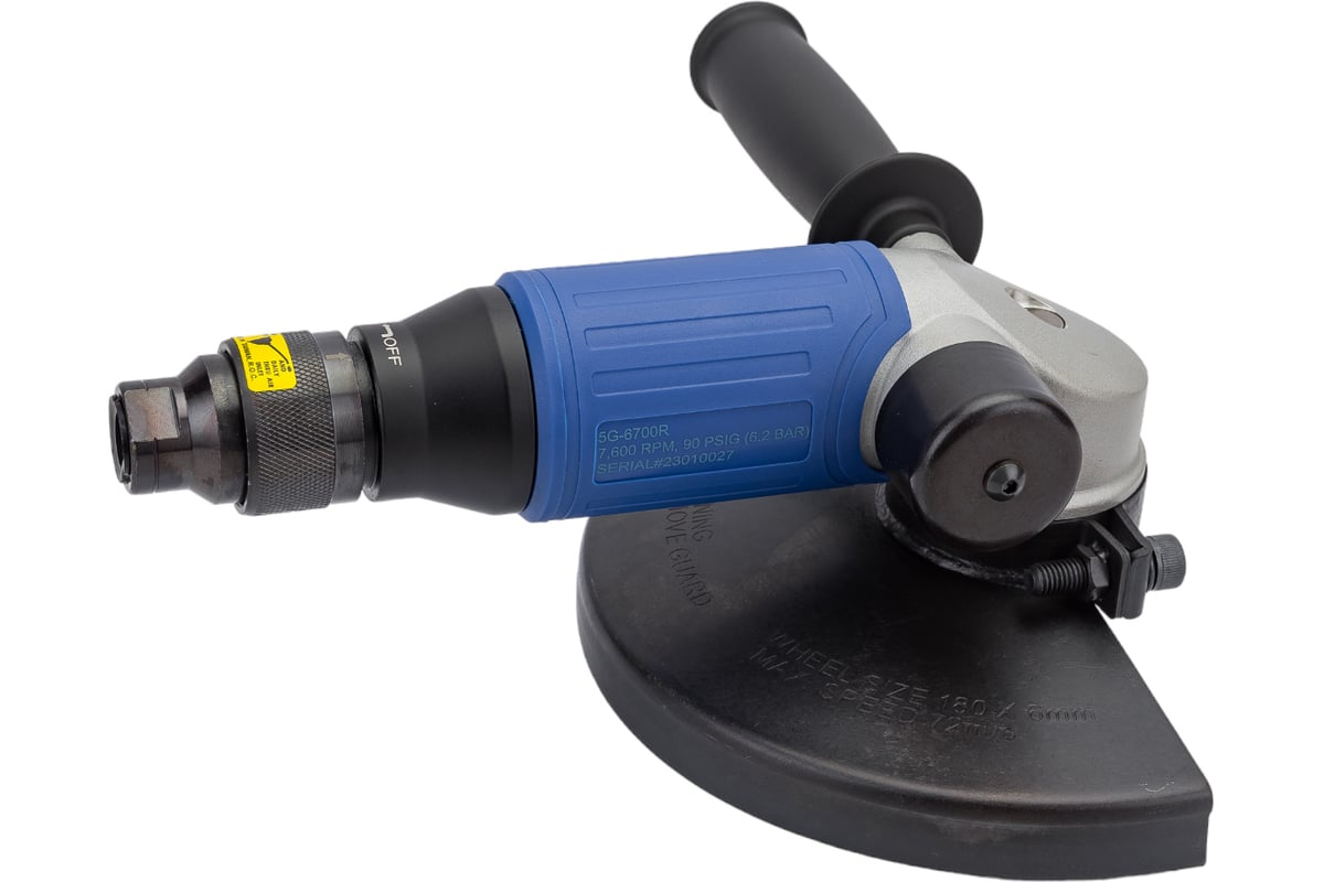 Угловая индустриальная пневмошлифмашина Byemax BM-5G-6700R эффективно обрабатывает различные поверхности.