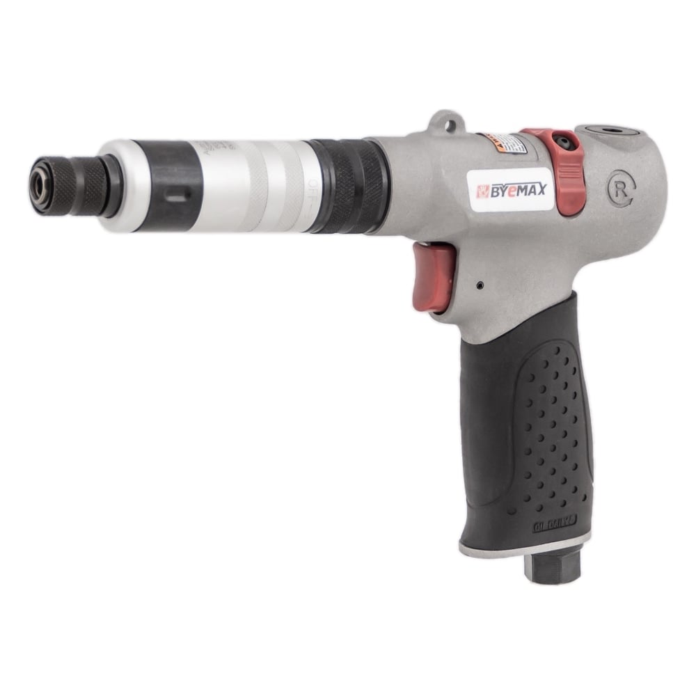 Пистолетный сборочный реверсивный пневмошуруповерт Byemax BM-AS004 предназначен для работ с различными соединениями. Модель имеет планетарную систему передачи с игольчатыми подшипниками, которая обеспечивает точный и постоянный момент затяжки. Прочный корпус надежно защищает внутренние элементы от механических повреждений при ударах и падениях.