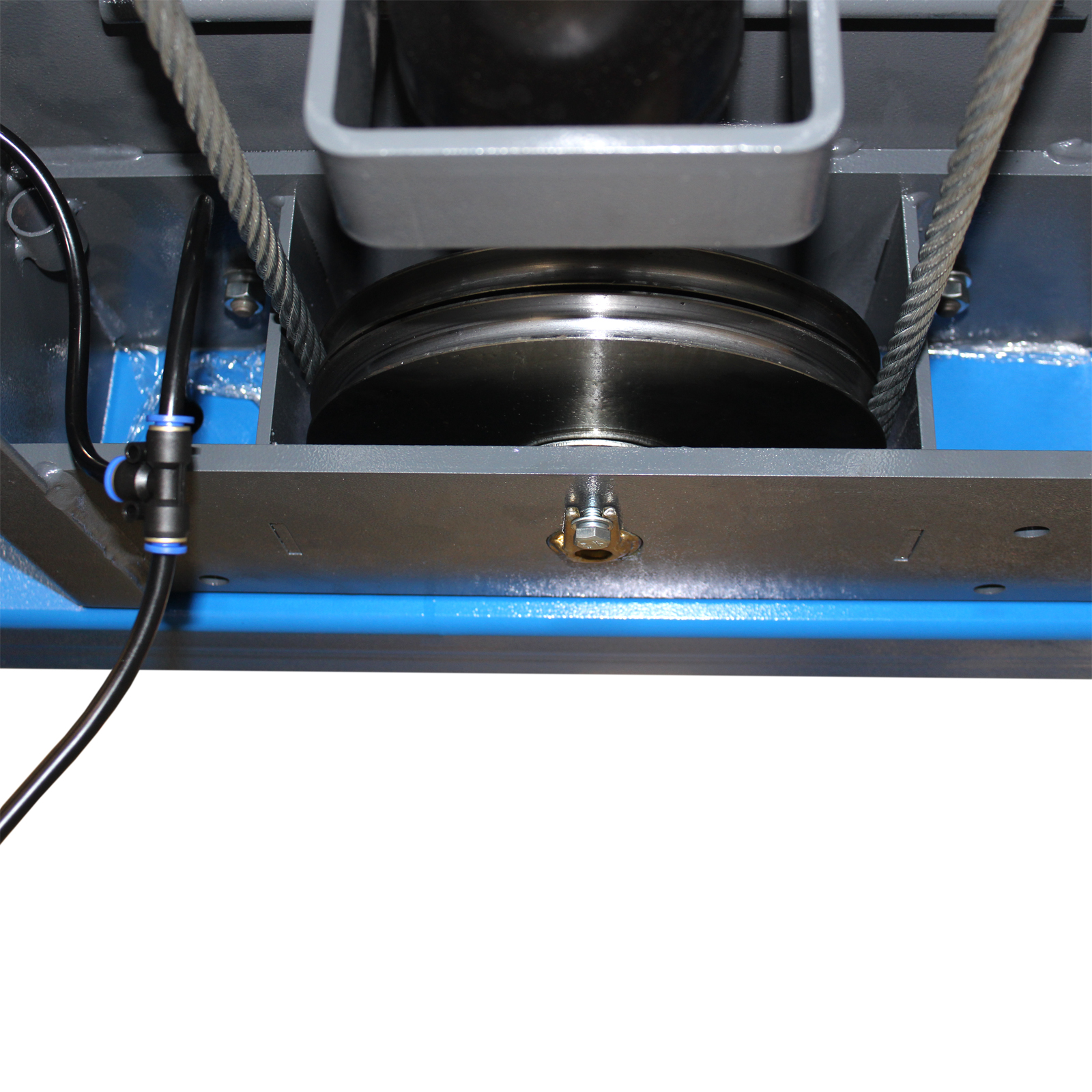 Каретки приводятся в действие гидравлическим цилиндром и системой стальных тросов. Оборудование имеет низкий уровень шума.