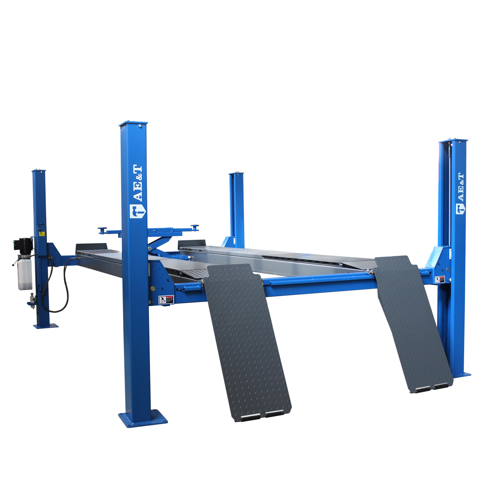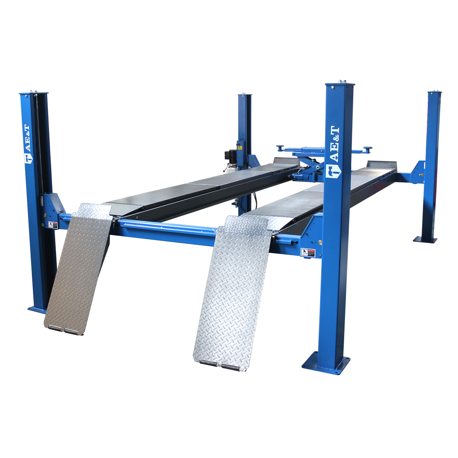 Подъемник F5.5-4 для сход-развала – самый мощный и большой в линейке четырехстоечных моделей AE&T. Он спроектирован для максимально удобного проведения осмотра, профилактики и настроечных работ в легковых, бронированных автомобилях и малых грузовиках весом до 5 500 кг.