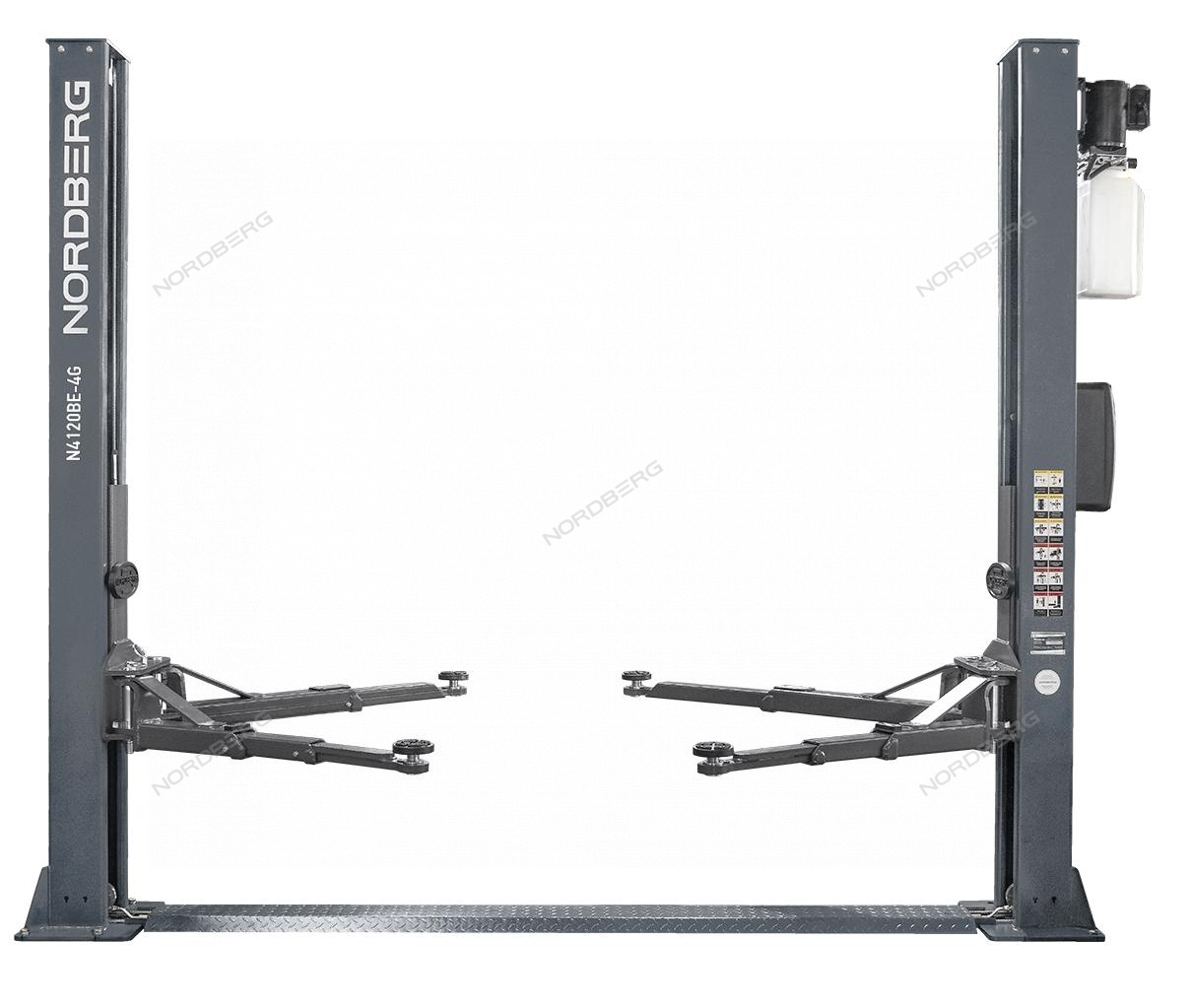 4-тонный электрогидравлический подъемник с нижней тросовой синхронизацией NORDBERG N4120BE-4G серый с электростопорами.