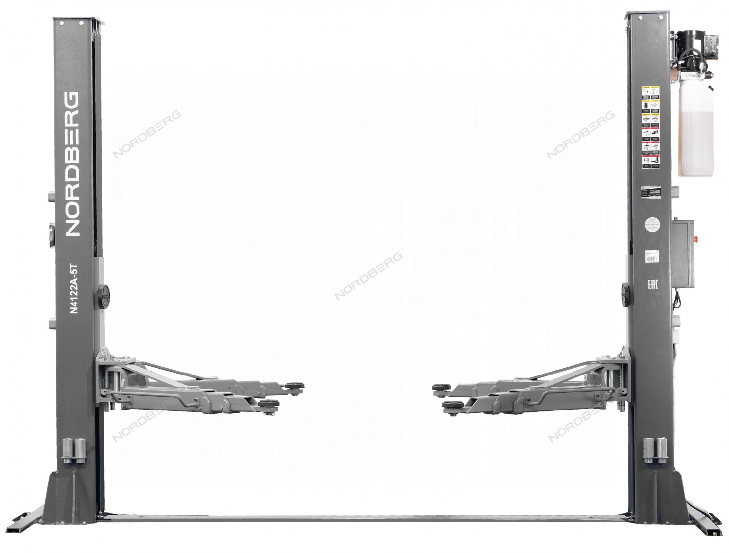 Подъемник двухстоечный 5 т, нижняя синхронизация, с электростопорами, 380 В, серый N4122AE-5G_380