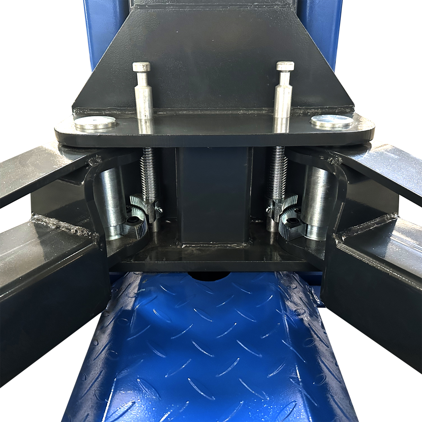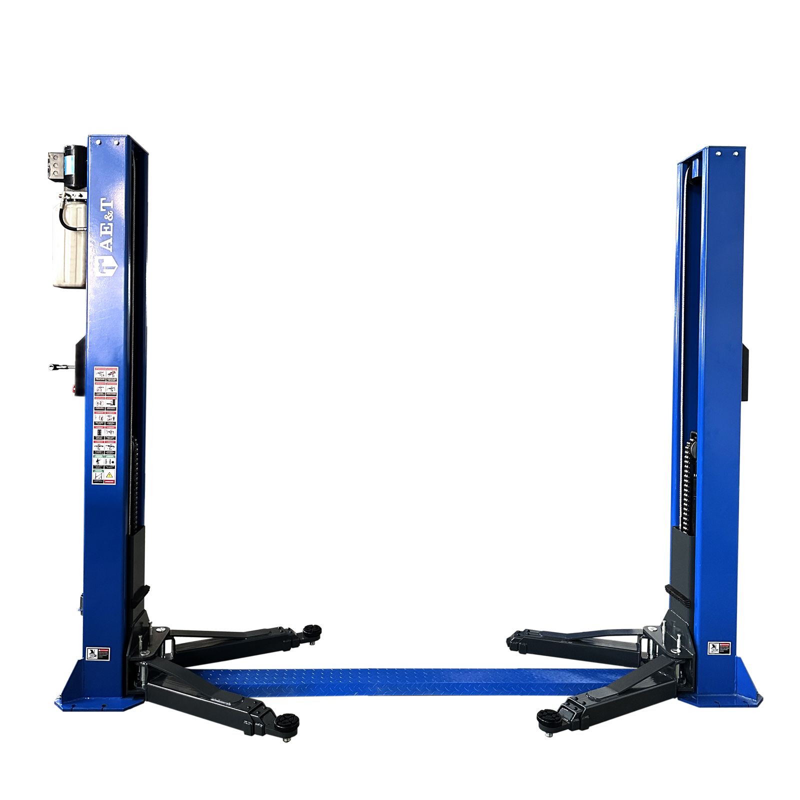 Двухстоечный подъемник Т5.5 симметричной конструкции. 3-х секционные лапы длиной 1 800 мм. Предназначен для вывешивания тяжелых, в том числе бронированных, машин весом до 5 500 кг на высоту до 1800 мм.