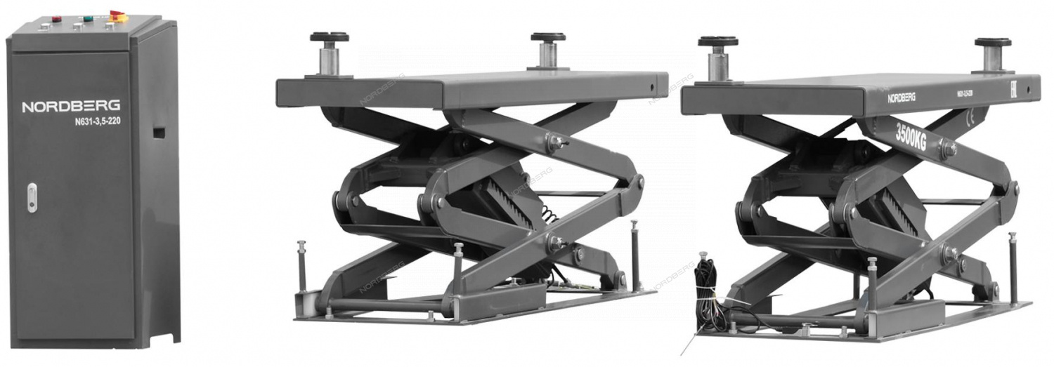 Ножничный подъемник NORDBERG N631-3,5G – это удобное оборудование для подъема автомобилей до 3.5 тонн, предназначен для профессионального и бытового использования в автосервисах, помещениях гаражного типа, а также других производственных помещениях.