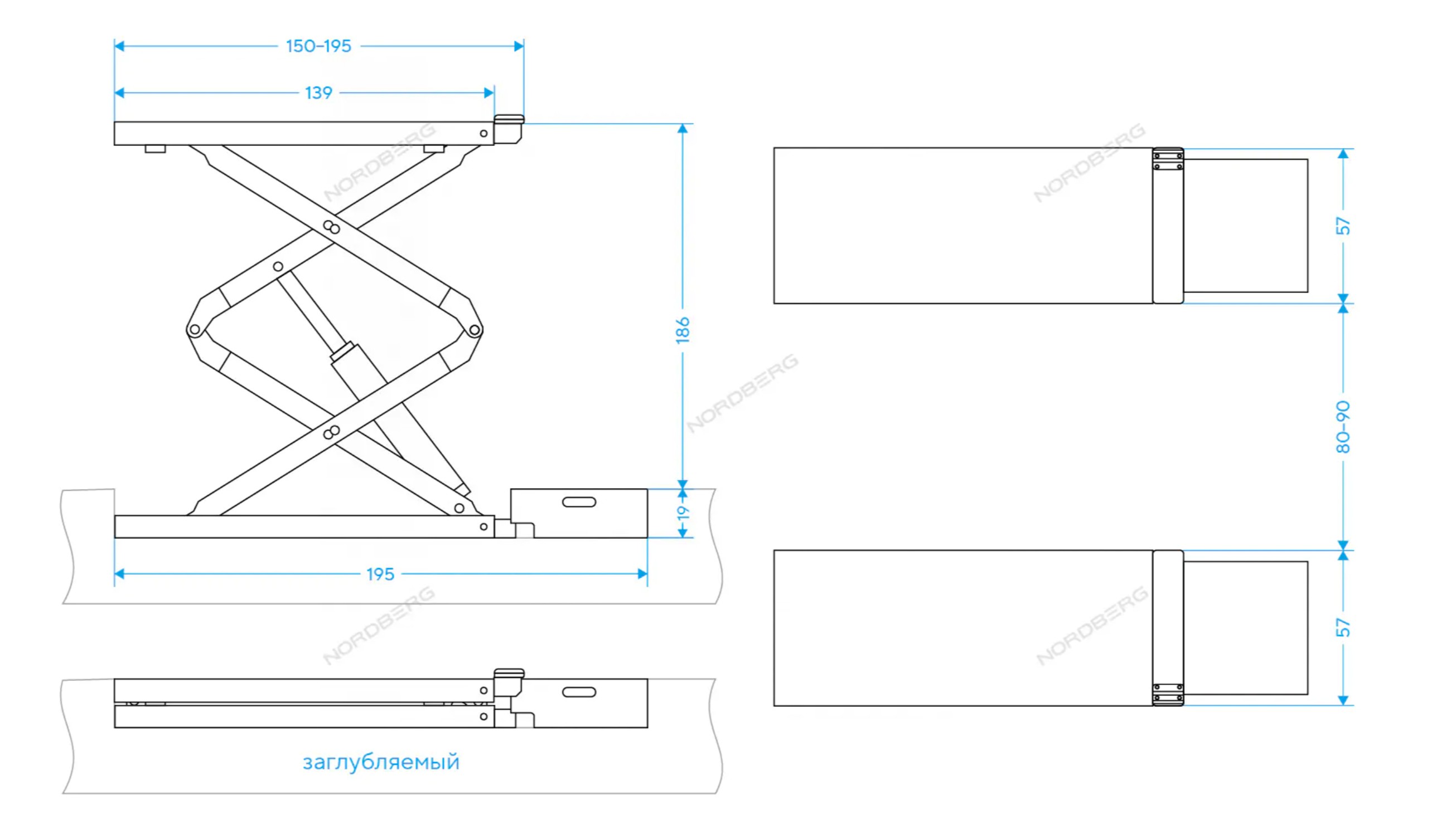 N631-4B_380 NORDBERG Подъемник ножничный 4 т, 380 В, синий
