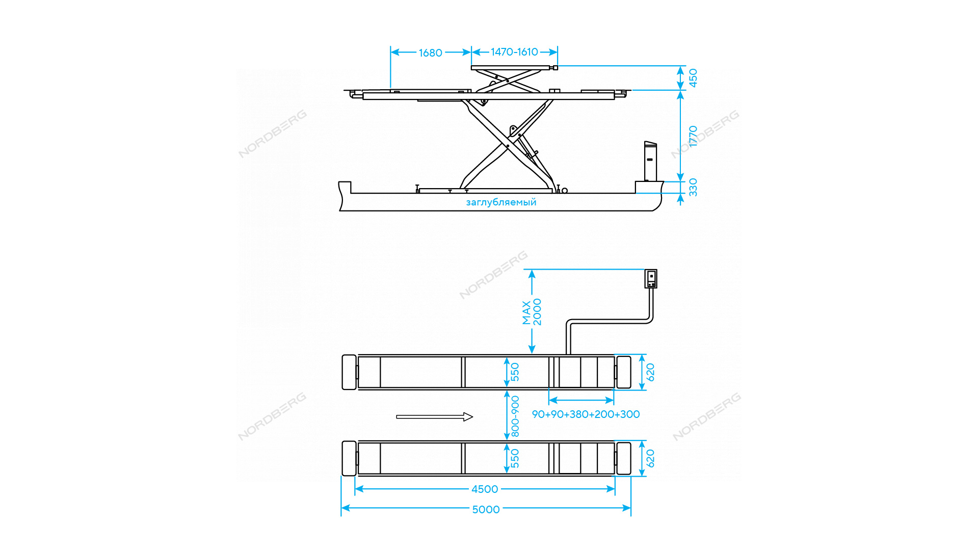 Подъемник ножничный для сход-развала NORDBERG N635-4,5G_380_H – профессиональное оборудование для обслуживания легкового и грузового транспорта в автосервисных мастерских и СТО.