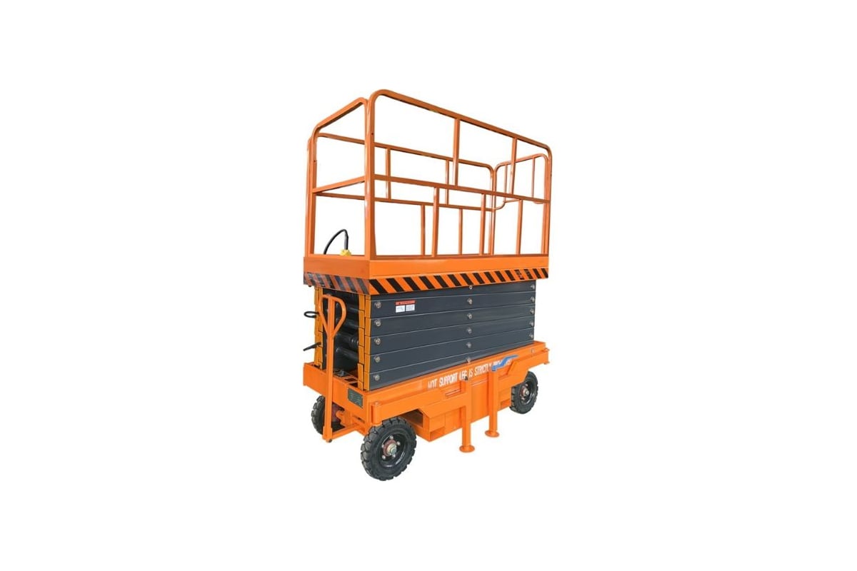 Гидравлический подъемник несамоходный ножничного типа разработан для выполнения высотных работ, подъема рабочих, необходимых инструментов и материалов на высоту для проведения работ непосредственно с платформы. Передвижной ножничный подъемник предназначен для использования в закрытых и открытых помещениях на ровных и горизонтальных поверхностях. Применяется главным образом для выполнения отделочных работ, текущего ремонта производственных помещений, замены фонарей и ламп в помещениях, обслуживания уличных фонарей, мытья стекол и т.д. Гидравлический подъемник является устройством с гидравлическим приводом. Один или два гидравлических цилиндра посредством системы ножниц поднимают платформу. Приводной механизм состоит из насоса и двигателя переменного тока.