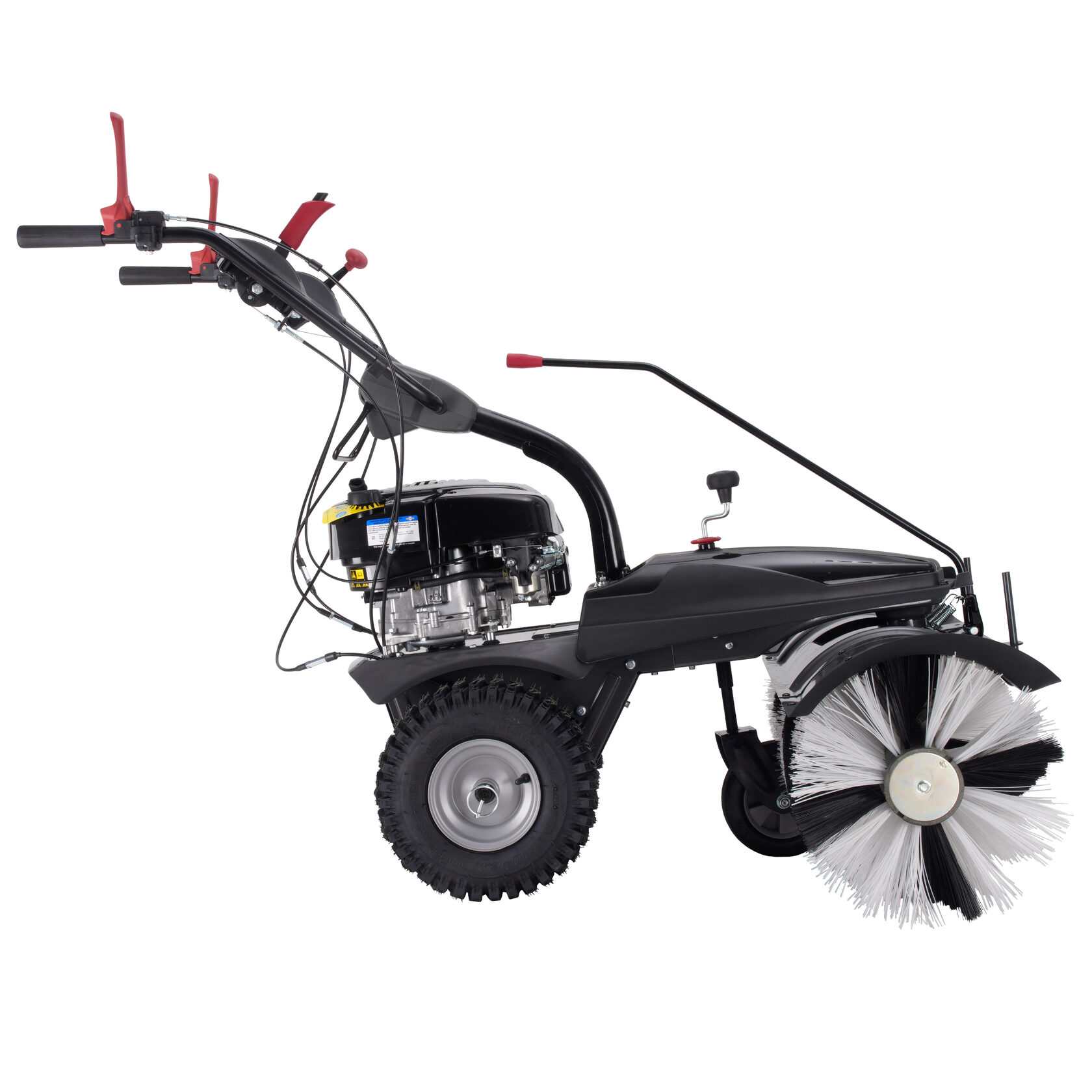 Максимальную производительность обеспечивает бензиновый двигатель Briggs & Stratton мощностью 5,5 л.с., который запускается с помощью ручного стартера. Щетки устанавливаются на подметальную машину EVOline SWG 1000 B без применения дополнительных инструментов, рабочая ширина составляет 100 см. Крупные колеса с протекторным рисунком способствуют легкому продвижению машины по разным типам местности.