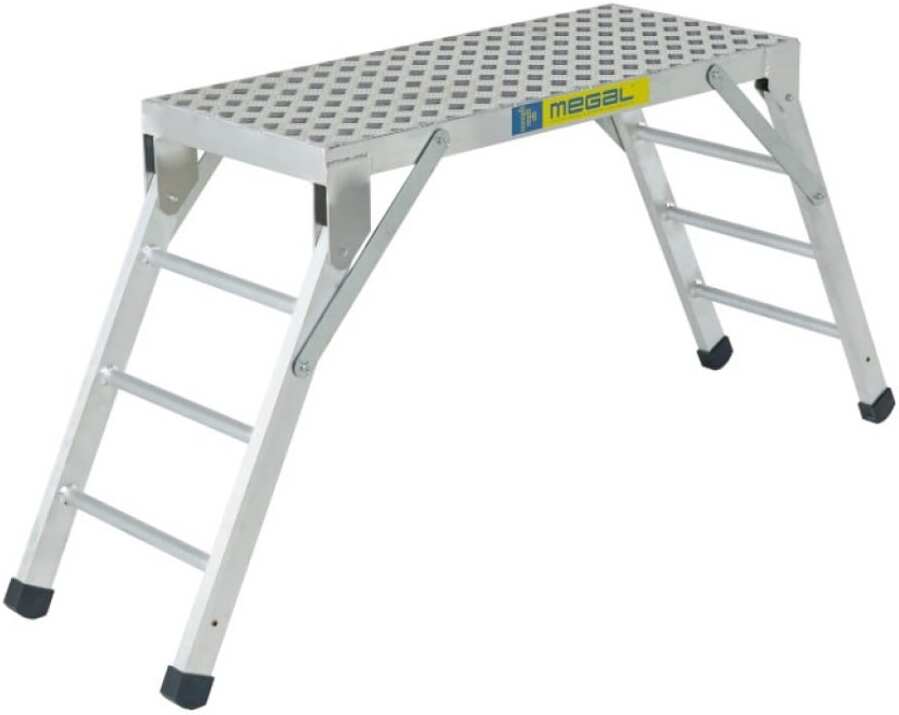 Подмости раскладные алюминиевые MEGAL ПРА - 0,9 (1,2 х 0,5) предназначены для организации рабочего места на небольшой высоте при выполнении монтажных, сервисных и прочих работ. Имеют двусторонний подъем. Монтаж подмостей производится без использования инструментов. Комфортная нескользящая рабочая площадка изготовлена из рифленого листа «квинтет». Обрезиненные наконечники, не повреждают опорную поверхность. Высокая грузоподъемность обеспечивается за счет использования труб и профилей со стенкой не менее 2,5мм. Подмости имеют легкий вес за счет использования алюминиевых сплавов. Складная конструкция обеспечивает компактное хранение и удобную перевозку подмостей.
