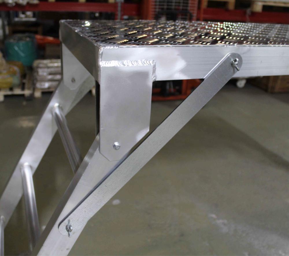 Подмости раскладные алюминиевые MEGAL ПРА - 1,2 (1,4 х 0,5) предназначены для организации рабочего места на небольшой высоте при выполнении монтажных, сервисных и прочих работ. Имеют двусторонний подъем. Монтаж подмостей производится без использования инструментов. Комфортная нескользящая рабочая площадка изготовлена из рифленого листа «квинтет». Обрезиненные наконечники, не повреждают опорную поверхность. Высокая грузоподъемность обеспечивается за счет использования труб и профилей со стенкой не менее 2,5мм. Подмости имеют легкий вес за счет использования алюминиевых сплавов. Складная конструкция обеспечивает компактное хранение и удобную перевозку подмостей.