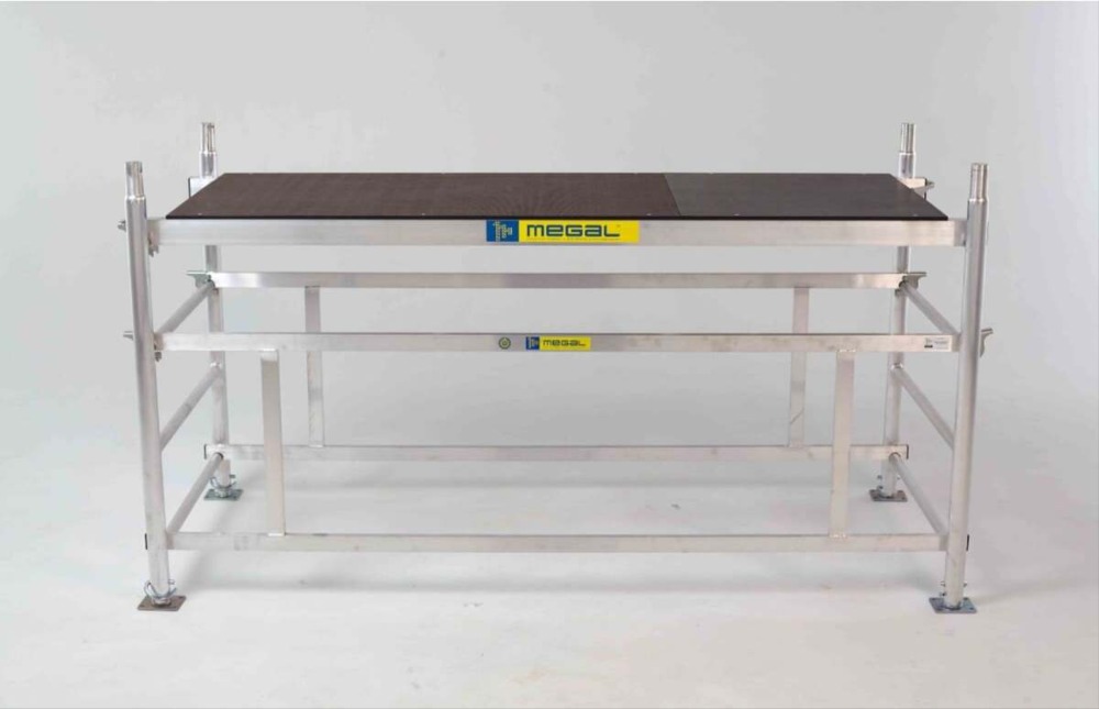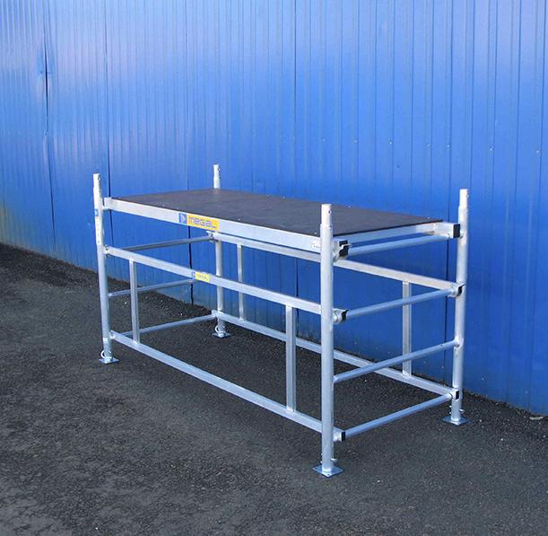 Подмости разборные алюминиевые MEGAL ПРА - 700 предназначены для проведения любых видов работ на небольших высотах. Настил площадки выполнен из влагостойкой ламинированной фанеры – 9 мм. Модульная конструкция подмостей позволяет варьировать высоту рабочей площадки с шагом 0.27 метра. Применяются в свободно стоящем положении на высоте до 3.0 метров от капитального устойчивого основания в помещениях, на открытых площадках и лестничных маршах при температуре от -40_С до +50_С. Сборка производится без использования инструментов. Подмости имеют легкий вес за счет использования алюминиевых сплавов.