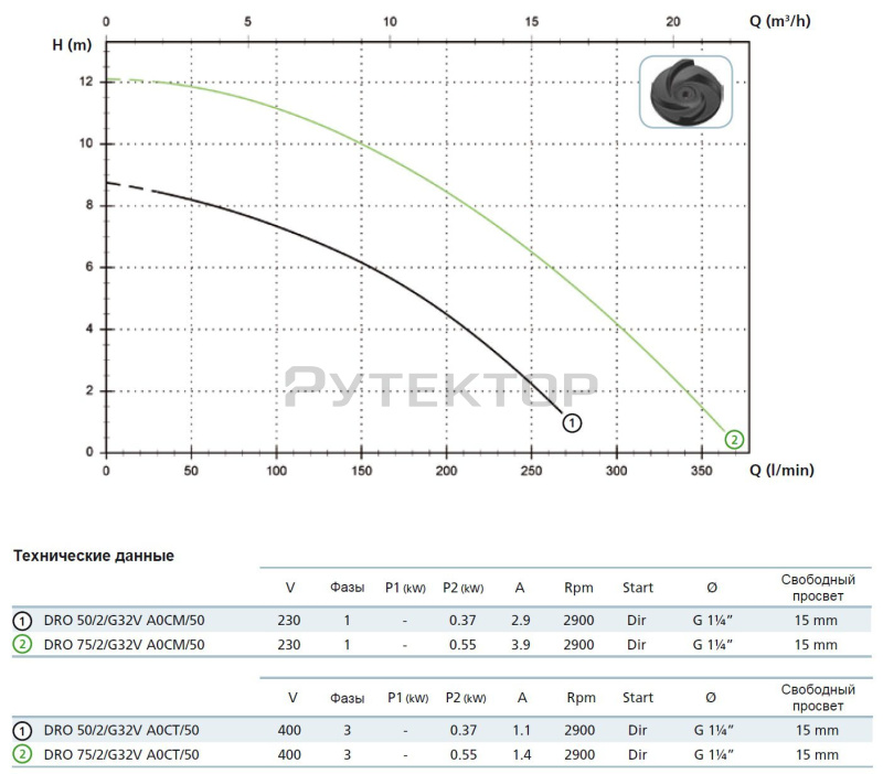 Насосные агрегаты типа DRO - погружные с открытым многоканальным рабочим колесом и вертикальным подающим патрубком. Проточная часть насоса и рабочее колесо выполнены из чугуна. Два оппозитные механические уплотнения из карбида кремния и граффито-глиноземной смеси в масляной камере. Электродвигатель в масляной камере. Назначение: для чистой и слегка загрязненной воды с взвешенными частицами с диаметром до 15 мм температурой не более 40° С; предназначен для сурового бытового и профессионального применения.