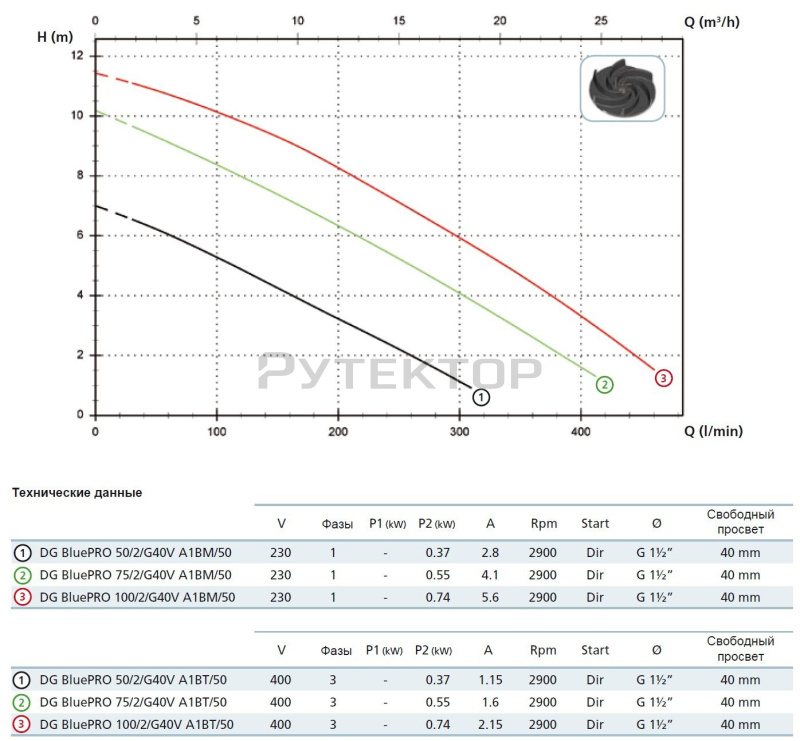 Насосные агрегаты типа DG Blue PRO - погружные с глубоко посаженным рабочим колесом рабочим колесом Vortex и горизонтальным подающим патрубком. Проточная часть насоса и рабочее колесо выполнены из чугуна. Два оппозитные механические уплотнения из карбида кремния в масляной камере. Электродвигатель сухого типа. Назначение: для загрязненной и канализационной воды с длинными волокнистыми и взвешенными частицами диаметром до 50 мм температурой не более 40° С; предназначен для бытового и профессионального применения.