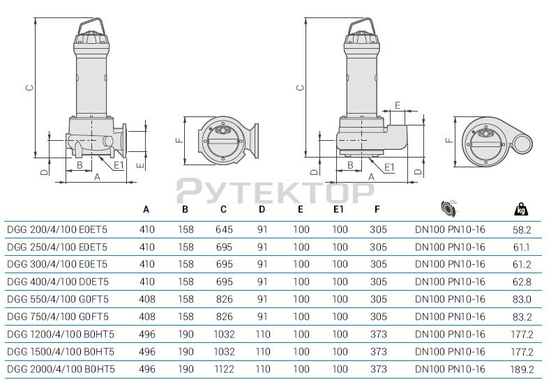 Насосные агрегаты типа DGG - погружные с глубоко посаженным рабочим колесом Vortex и горизонтальным подающим патрубком. Проточная часть насоса и рабочее колесо выполнены из чугуна. Два оппозитные механические уплотнения из карбида кремния в осматриваемой масляной камере. Электродвигатель сухого типа. Назначение: для загрязненной и канализационной воды с длинными волокнистыми и взвешенными частицами диаметром до 100 мм температурой не более 40° С; предназначен для использования в очистных сооружениях, канализационных системах, в промышленности и сельском хозяйстве.