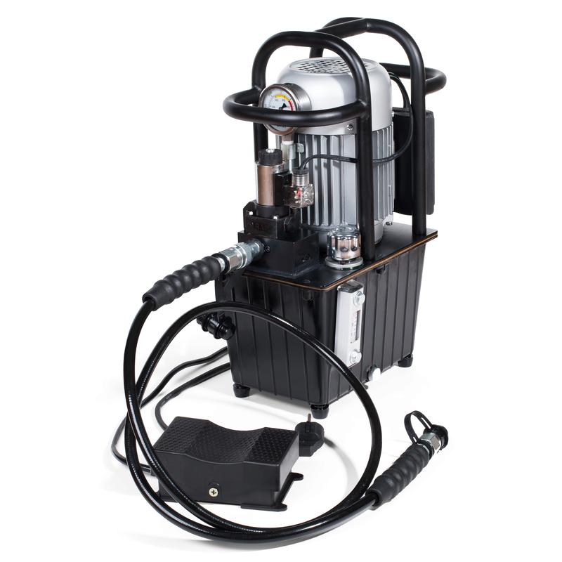 Помпа электрогидравлическая КВТ ПМЭ-7050У - профессиональный агрегат, предназначенный для нагнетания давления в подключаемом через рукав гидравлическом инструменте. ПМЭ-7050У от КВТ имеет автоматическую систему сброса давления и электромагнитное переключение скоростей. Концевые муфты соединительного рукава усовершенствованы для предотвращения излома. Рукояти для переноски выполняют также функцию защиты электродвигателя.