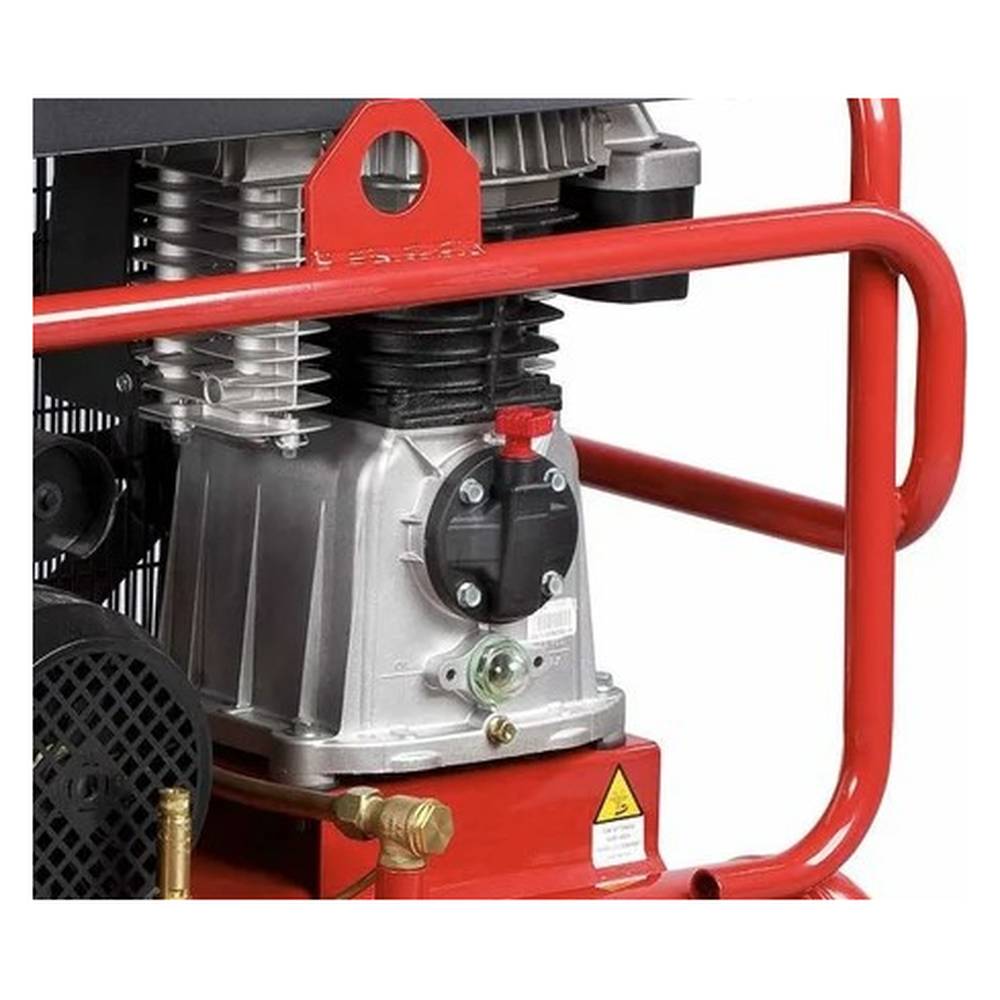 В основе устройства — двухступенчатая компрессорная головка, гарантирующая высокую производительность и продолжительность непрерывной работы. Ременной привод эффективно снижает пиковые нагрузки на двигатель, минимизирует вибрацию и способствует увеличению срока службы ключевых узлов.