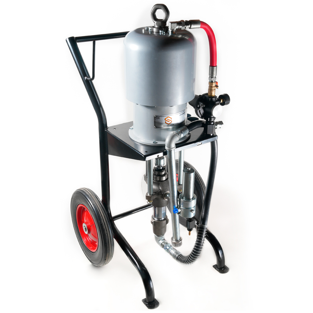 SCH254-X681 - поршневой окрасочный агрегат для безвоздушного распыления вязкой краски, работающий от сжатого воздуха из компрессора или от заводской пневматической сети. Окрасочный агрегат предназначен для промышленной покраски на заводах по производству металлических конструкций, вагонных заводах, на производствах, где требуется массовая покраска однотипных изделий одной и той же краской. Также аппарат применяется для антикоррозионной покраски, обработки металла цинконаполненными красками, покраски мостовых конструкций, многоэтажных домов, судов. Агрегат может распылять безвоздушным способом краски на водной основе и краски на растворителях. С красками средней вязкости он может работать на два-три малярных поста одновременно.