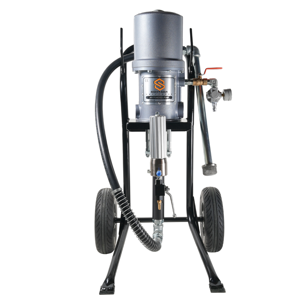 Schtaer SCH301-L303 - поршневой безвоздушный окрасочный аппарат, работающий от сжатого воздуха из компрессора. Окрасочный аппарат предназначен для промышленного применения на заводах по производству металлических конструкций, вагонных заводах, оконных и дверных фабриках, на производствах, где требуется массовая покраска однотипных изделий одной и той же краской. Окрасочный аппарат может работать круглосуточно, он охлаждается от краски. Аппарат может распылять безвоздушным способом краски на водной основе и краски на растворителях. С жидкими красками он может работать на два маляра одновременно.