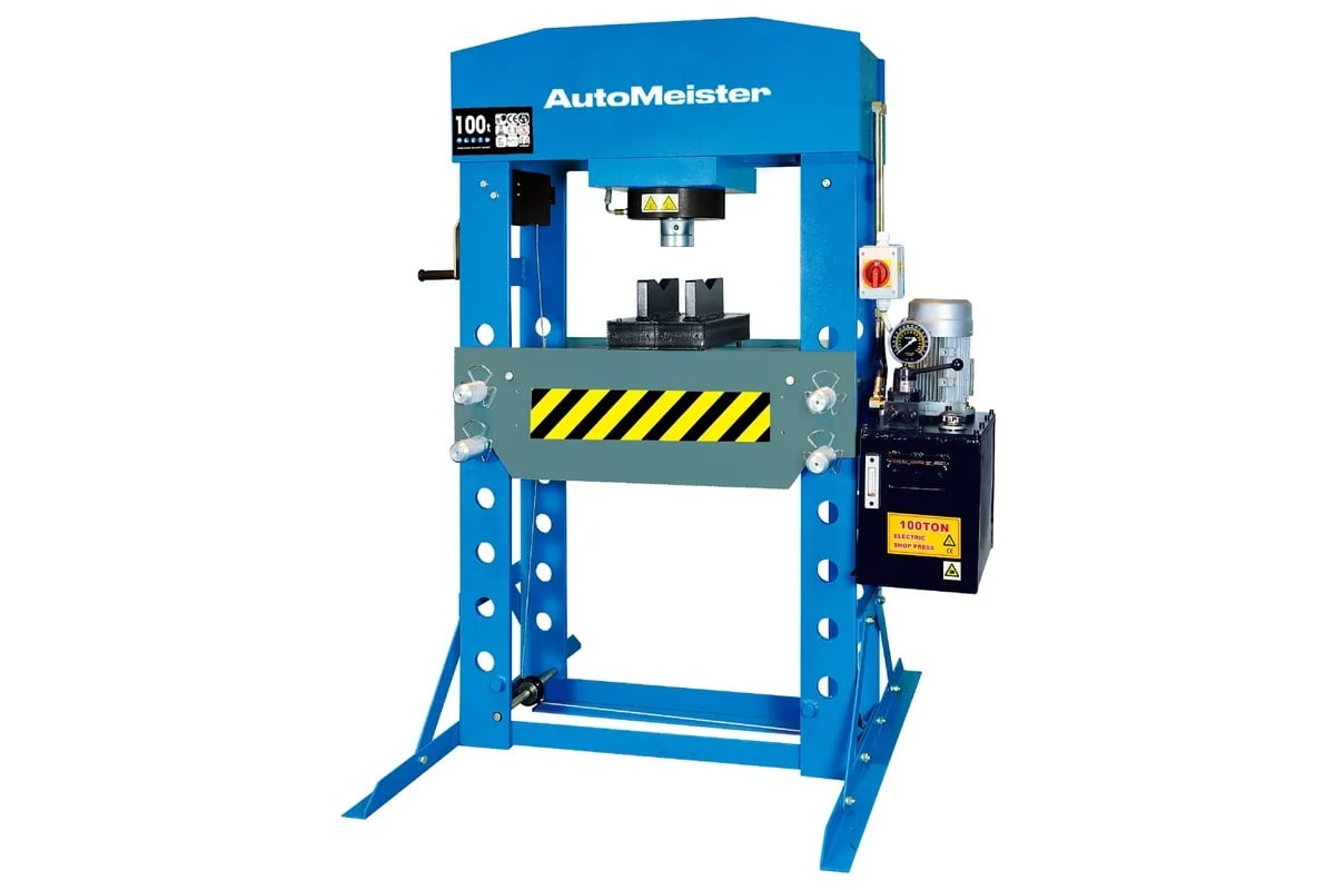 Пресс электрогидравлический AutoMeister 100т T0983H - это профессиональный напольный пресс с перемещаемым цилиндром вправо-влево. Усилие пресса составляет 100 тонн. Управление силовой подачей штока цилиндра осуществляется с помощью электроуправления. Пресс оснащен прочной сварной станиной. Рабочие параметры: напряжение 380 В, мощность — 1,5 кВт.