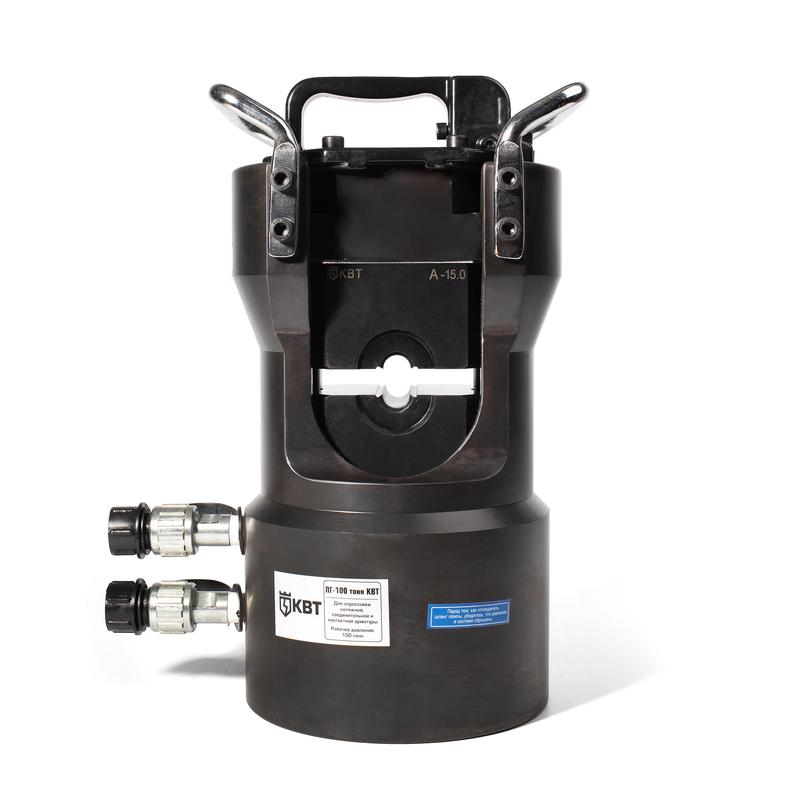 Пресс гидравлический КВТ ПГ-100 тонн - профессиональный инструмент, предназначенный для обжима арматуры ЛЭП в высоковольтных сетях на 110-500 кВ. Модули с гексагональными и круглыми профилями приобретаются под заказ.