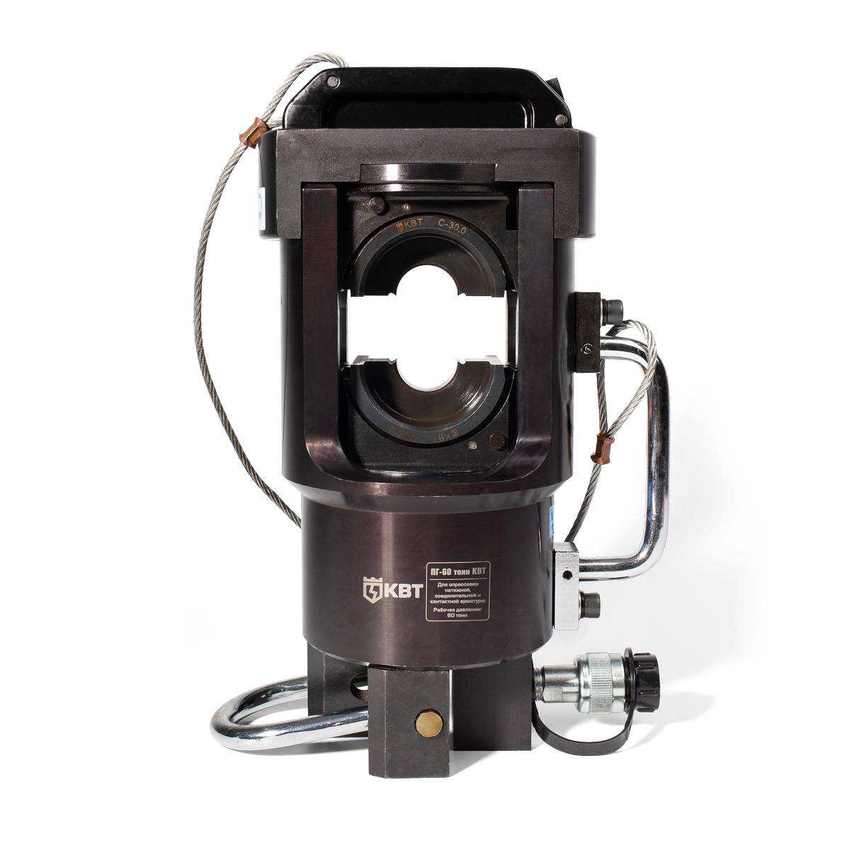 Пресс гидравлический безматричный КВТ ПГ-60 – профессиональный инструмент, предназначенный для обжима арматуры ЛЭП в высоковольтных сетях на 110-500 кВ. Модули с шестигранными и круглыми профилями приобретаются под заказ.