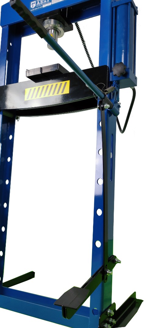 Данный пресс можно назвать оптимальным сочетанием надёжности, прочности, отказоустойчивости и удобства в работе: его корпус сварной, для пользователя предусмотрены ручка и ножная педаль, цилиндр можно смещать по горизонтали практически на полметра, а рабочий стол вверх-вниз двигается практически на целый метр. Множество СТО и сервисов хорошо оценили в работе эти преимущества, потому что они позволяют буквально за секунды настроить изделие под свои нужды, причём совершенно не прибегая к помощи сложных инструментов.