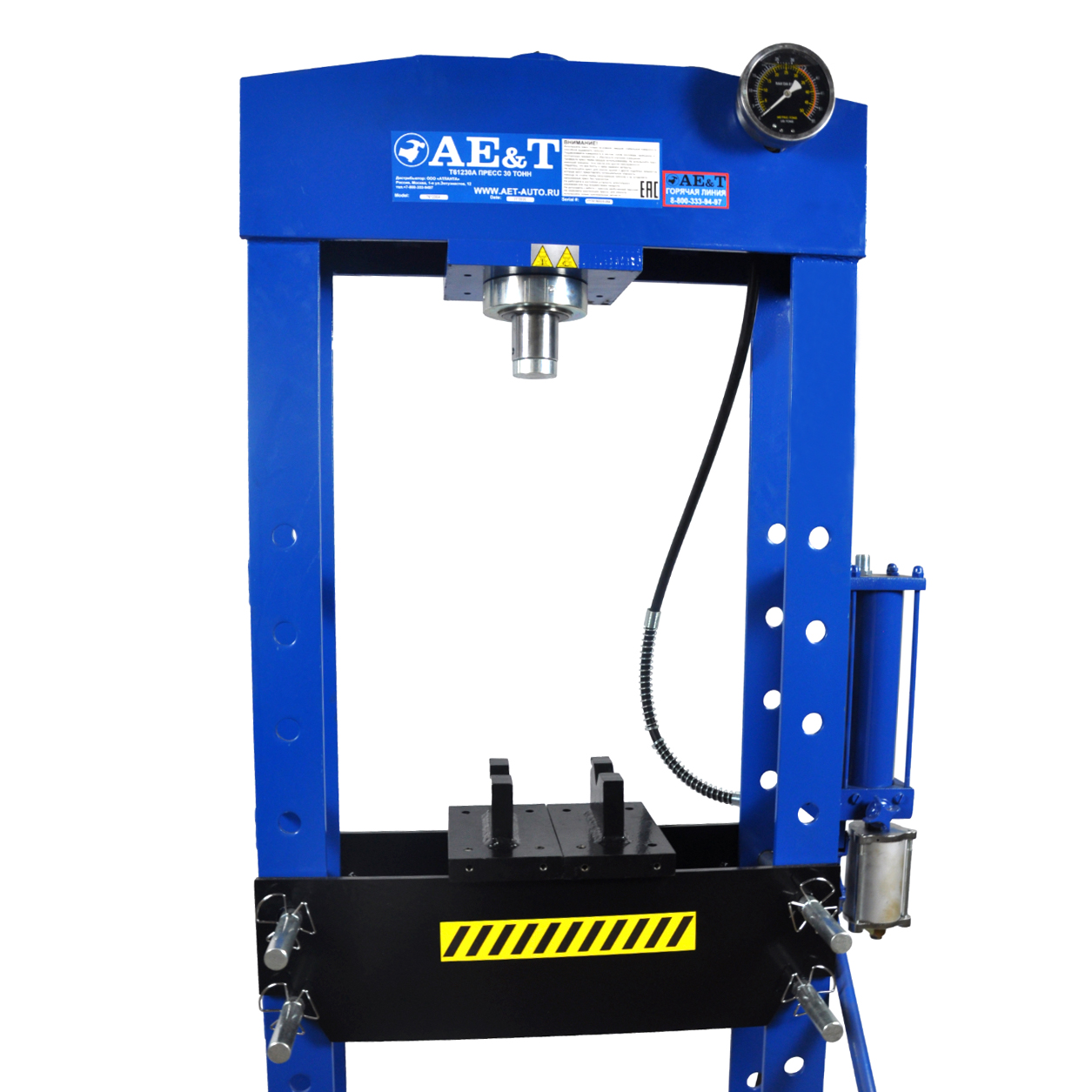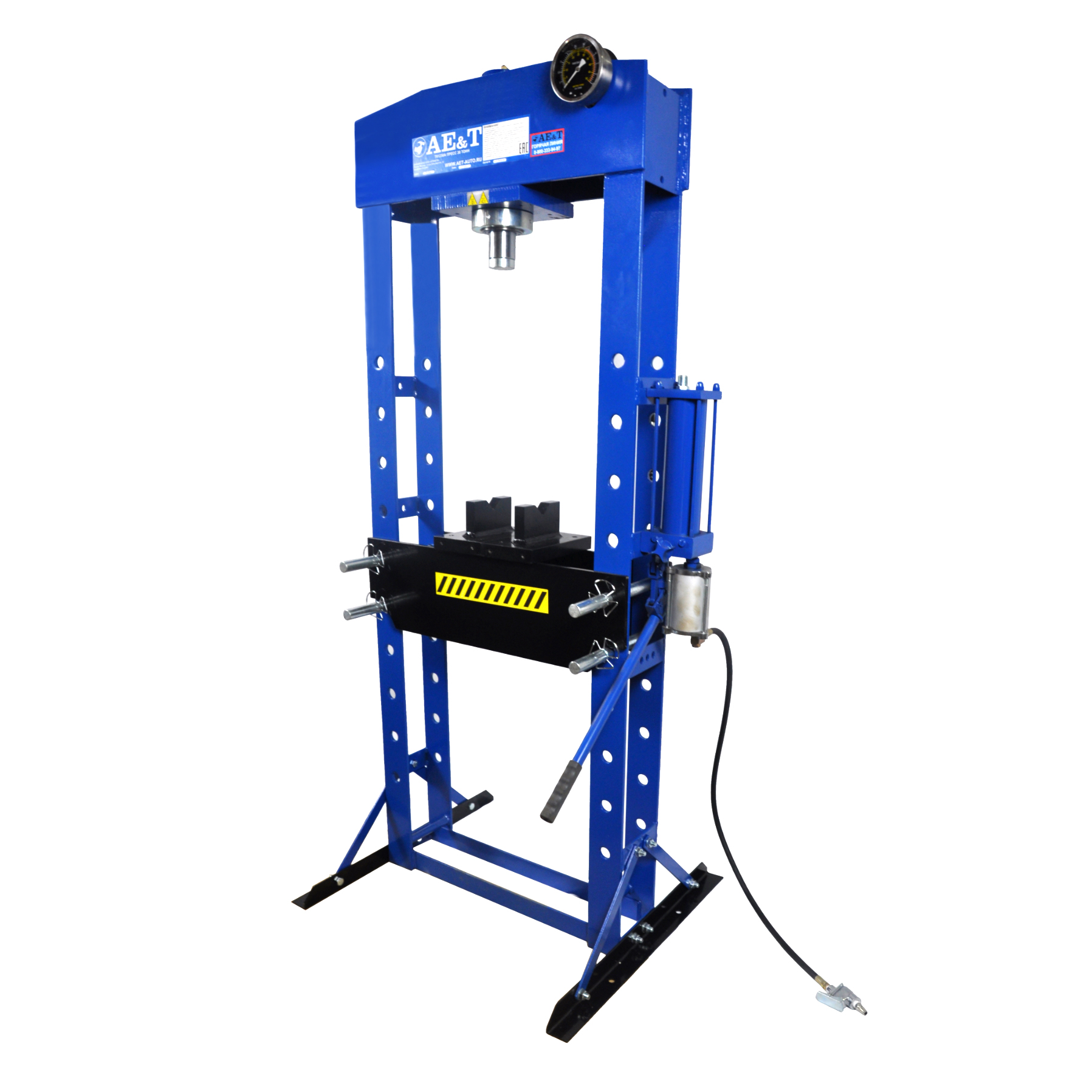 Данный пресс отлично сочетает в себе преимущества пневматических и ручных за счёт того, что в нём есть и пневмопривод, и рукоять для накачки цилиндра. Это упрощает применение в ситуациях, когда нет доступа к электроэнергии. Внушительную мощность дополняет усиленная сварная рама, возможность передвигать цилиндр вдоль рамы, прочный рабочий стол, который можно перевешивать вверх или вниз на 880 мм и возвратный механизм. Опыт и положительная обратная связь клиентов показывают, что T61230A отлично подходит любым российским сервисам и станциям техобслуживания, когда необходимы сборка и разборка, запрессовка-выпрессовка подшипников, втулок, других запчастей.