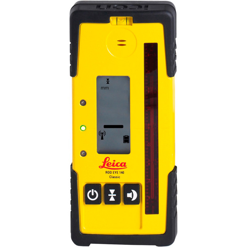 Фотоприемник Leica Rod Eye 140 с детектором 12 сантиметров. В качестве источника питания используются 2 батареи AA.