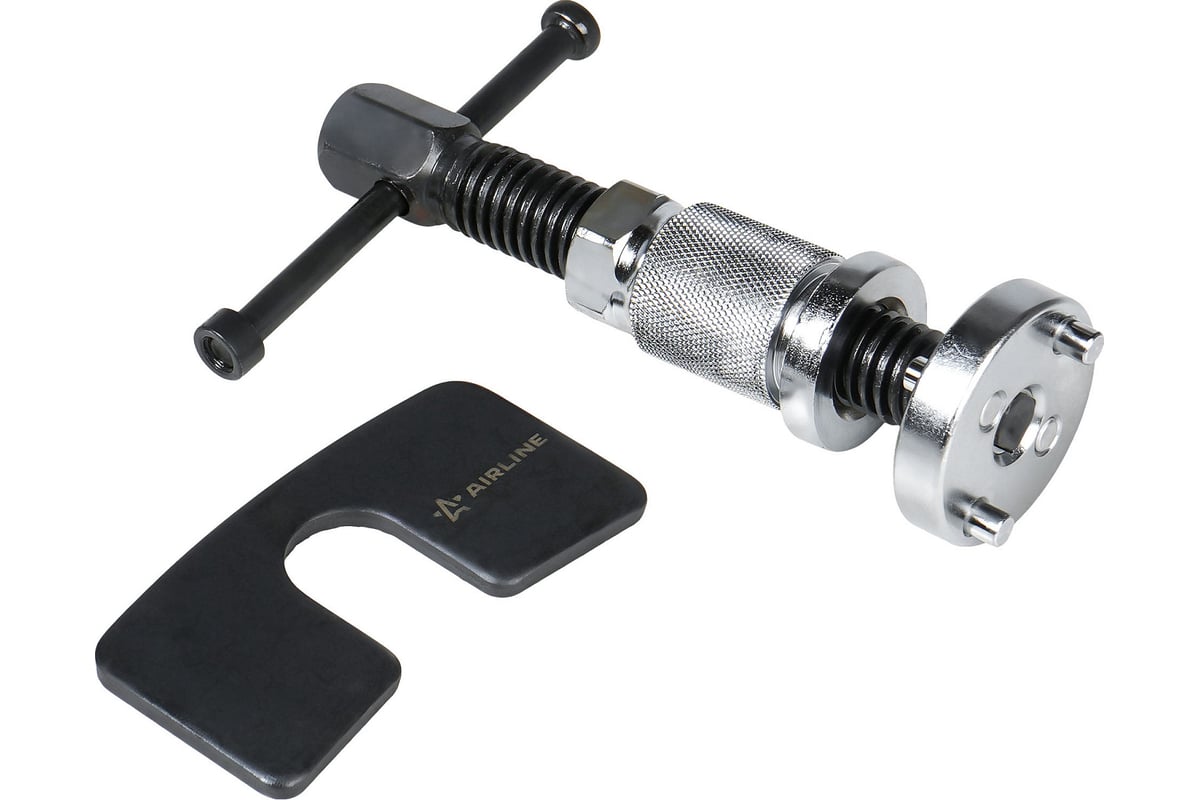 Приспособление для утапливания поршней тормозного цилиндра AIRLINE ATBT002 Приспособление для утапливания поршней тормозного цилиндра предназначено для обслуживания дисковых тормозных механизмов автомобилей. Позволяет без усилий и риска повреждения утопить поршень суппорта при замене тормозных колодок, предотвращая заклинивание и обеспечивая равномерный прижим новых колодок к диску.