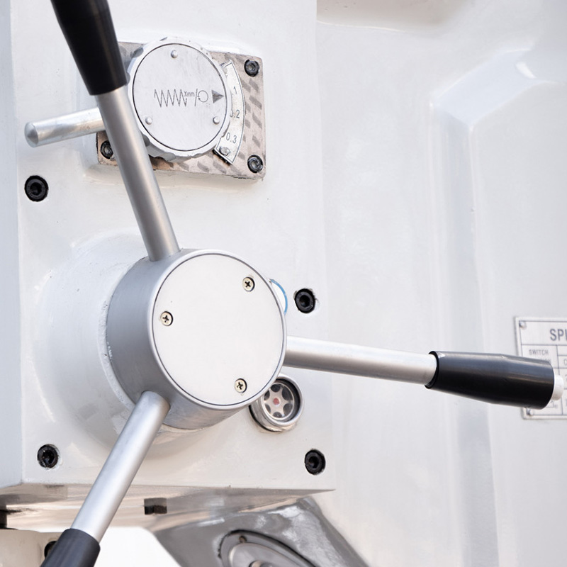 B-1835G/400 оснащён функциями поворота и автоматического подъёма стола, имеющего 2 т-образных паза для крепления приспособлений и деталей, что обеспечивает удобство работы и расширяет возможности станка.