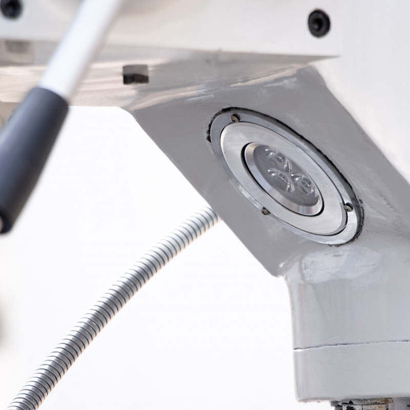 Для дополнительной защиты оператора станок оборудован защитным экраном с концевиком, который не закрывает обзор, но обеспечивает безопасность во время работы. Конструкцией предусмотрена система охлаждения продлевающая срок службы режущего инструмента.