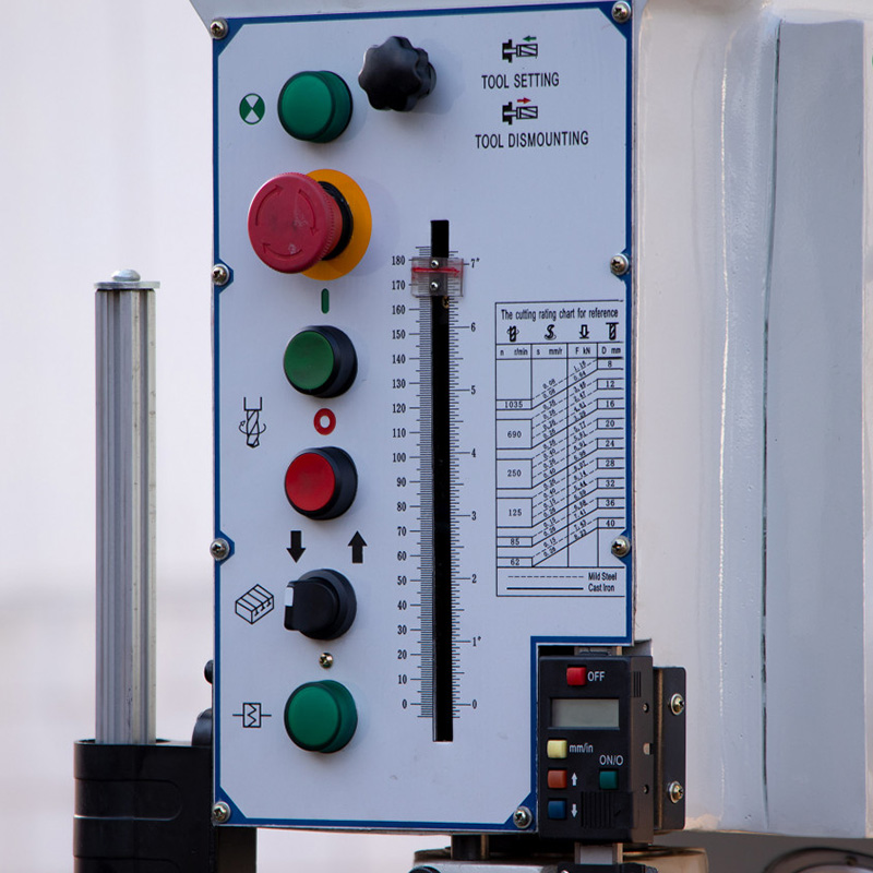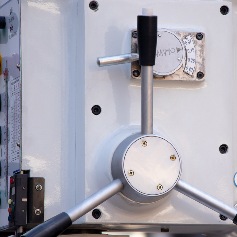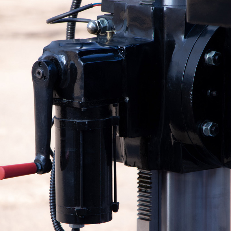 Станок обладает рядом особенностей. Данная модель произведена в напольном исполнении и требует надёжной установки на анкерные болты. Отдельно стоить отметить регулируемую автоматическую вертикальную подачу пиноли при сверлении с автоматическим отключением на заданную глубину. 12 скоростной редукторный привод с удобным переключением оборотов шпинделя. Мощный асинхронный двигатель выдерживающий высокие нагрузки. Автореверс при нарезании резьбы, причём так же как автоподача – с настройкой заданной глубины.